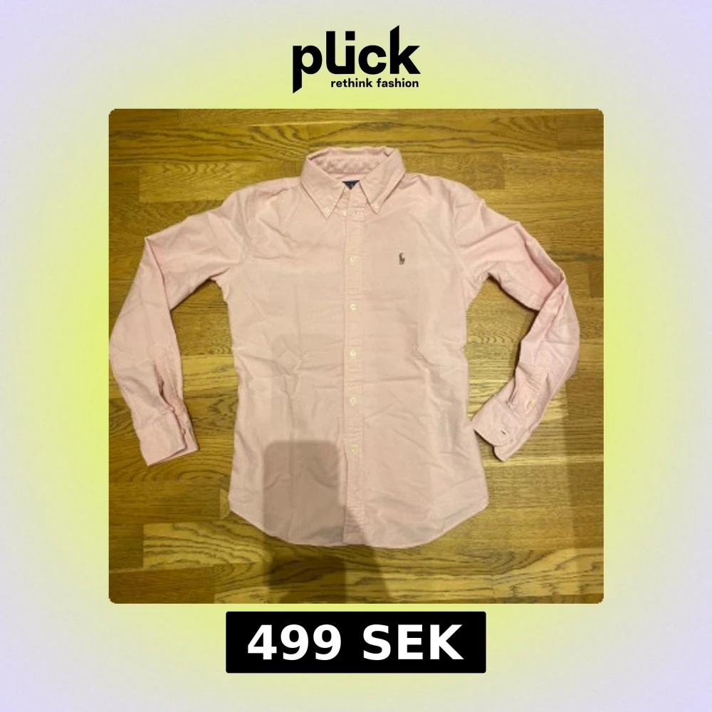 Snygg rosa skjorta från Ralph Lauren i storlek S. Skjortan har en klassisk krage och är dekorerad med det ikoniska broderade logotypen på bröstet. Perfekt för en stilren look.