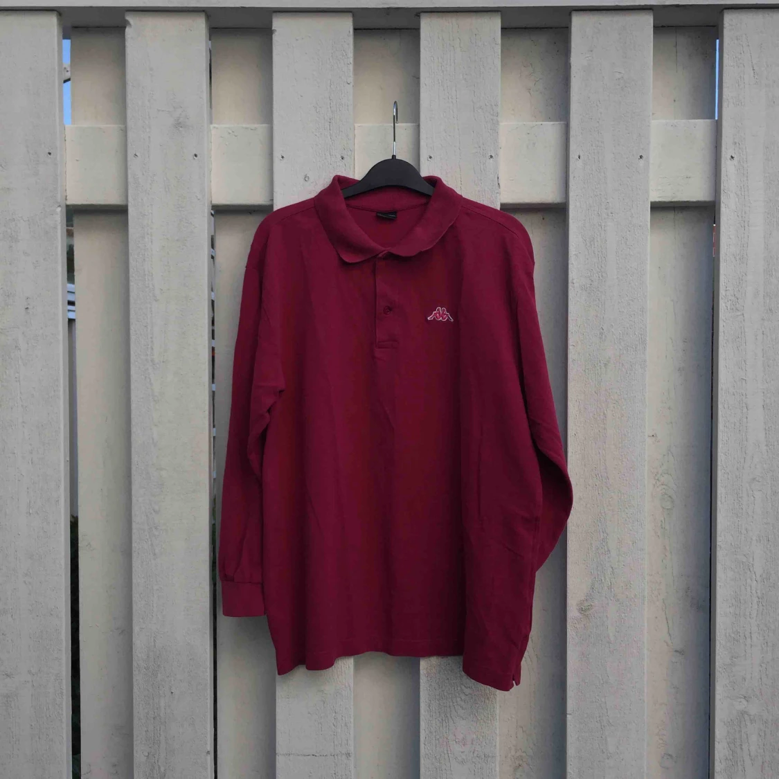 Snygg och bekväm piké-skjorta från märket kappa. 100% bomull, storlek L. Köpt på second hand. Väl använd men i gott skick förutom en svag fläck från whiteboard-penna på magen. Borde gå bort med fläckborttagning. Frakt 50kr eller mötas i Göteborg.