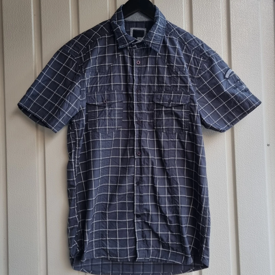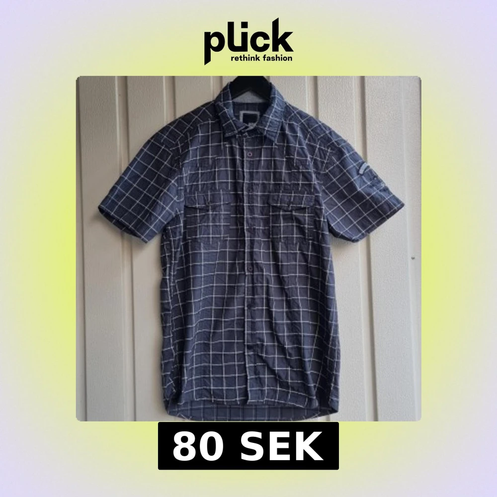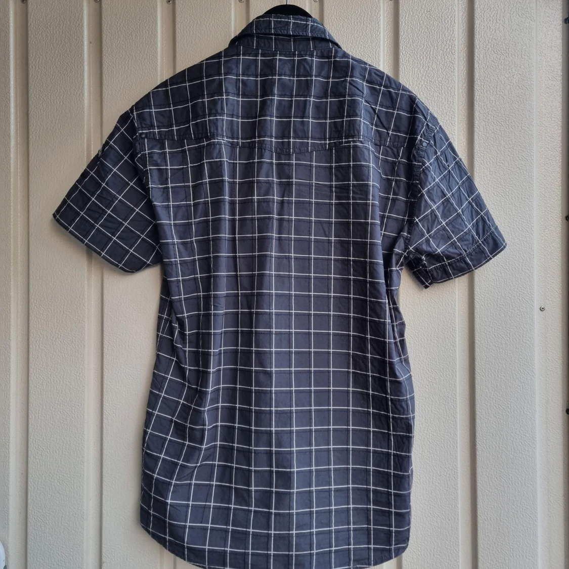 Kortärmad skjorta från Jack & Jones i storlek XL. Skjortan är mörkblå med vitt rutmönster. Förutom en tråd som har gått upp och en annan defekt, så har tröjan knappt används.