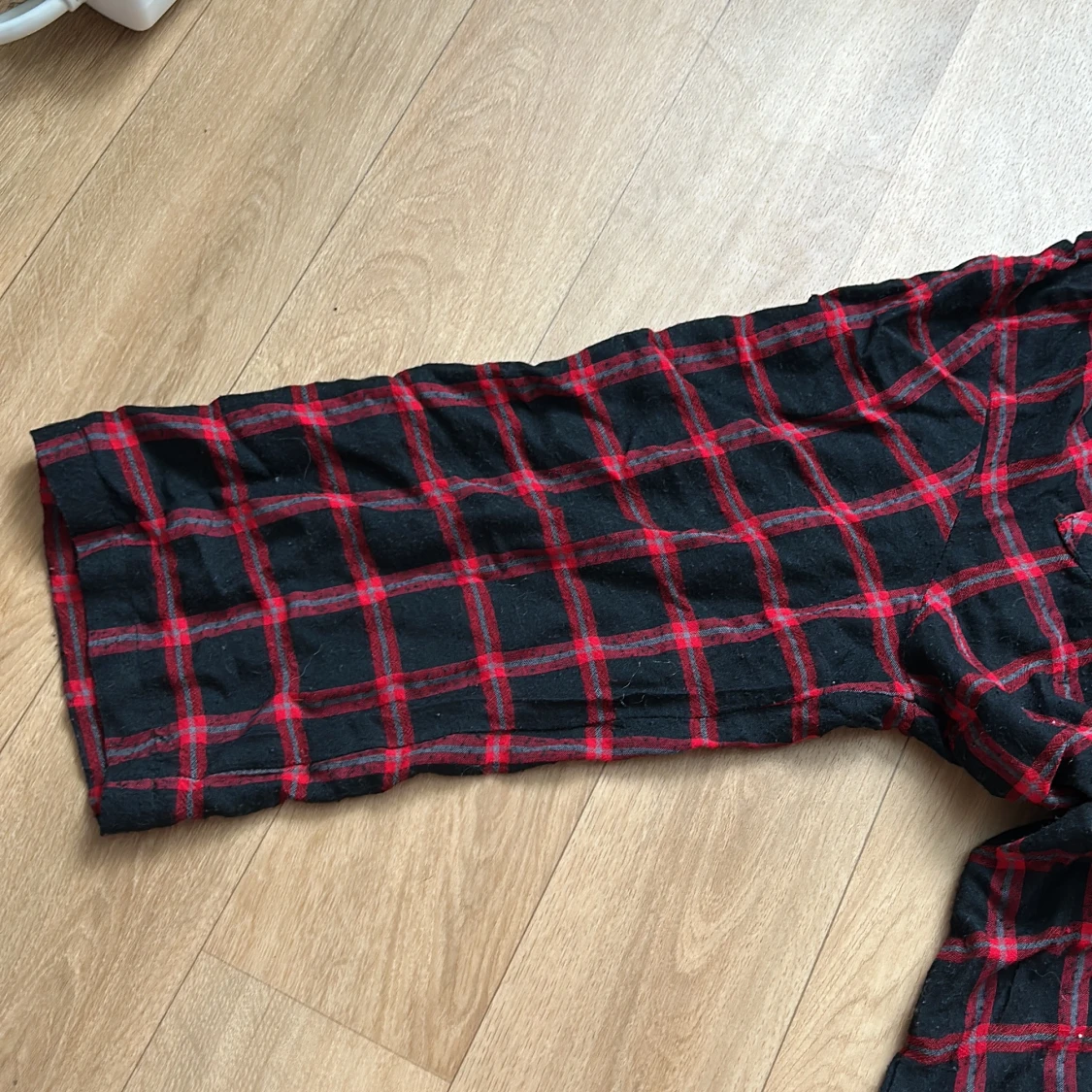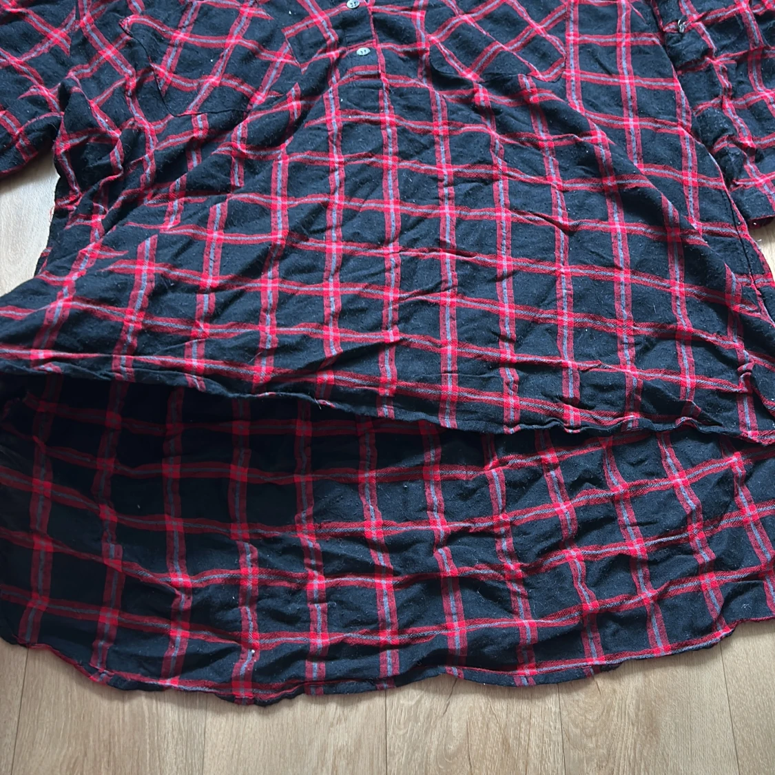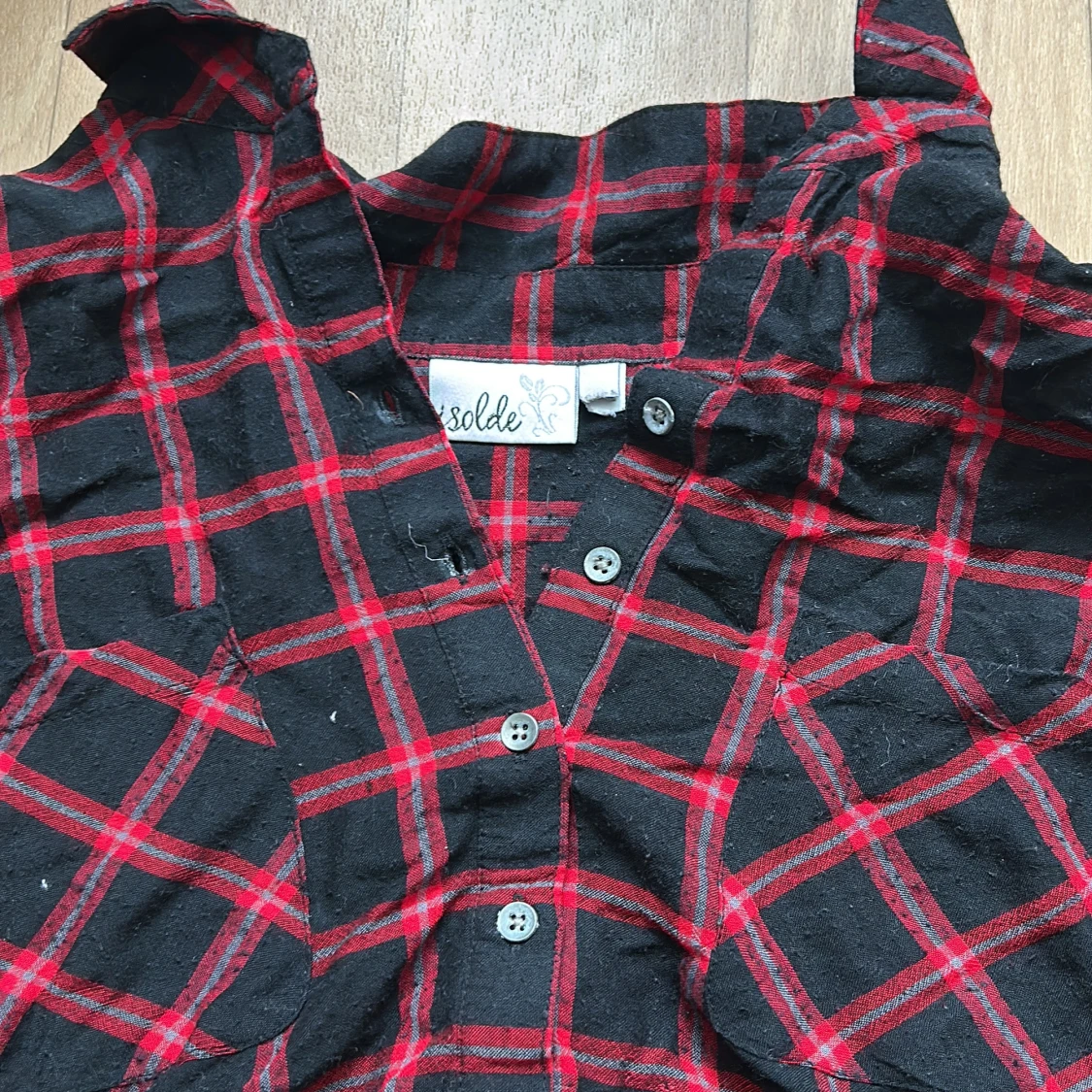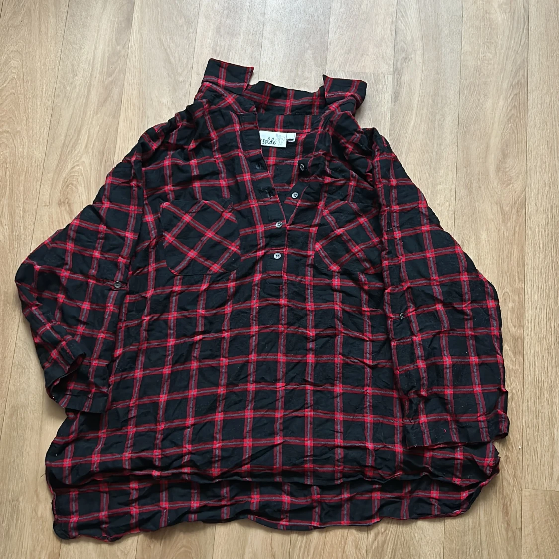 Svart och röd rutig henley-skjorta från Isolde med trekvartsärm och knappar framtill. Skjortan har en avslappnad passform och är tillverkad i mjuk bomull. Sparsamt använd + inga synliga defekter (utom något nopprig)!!!