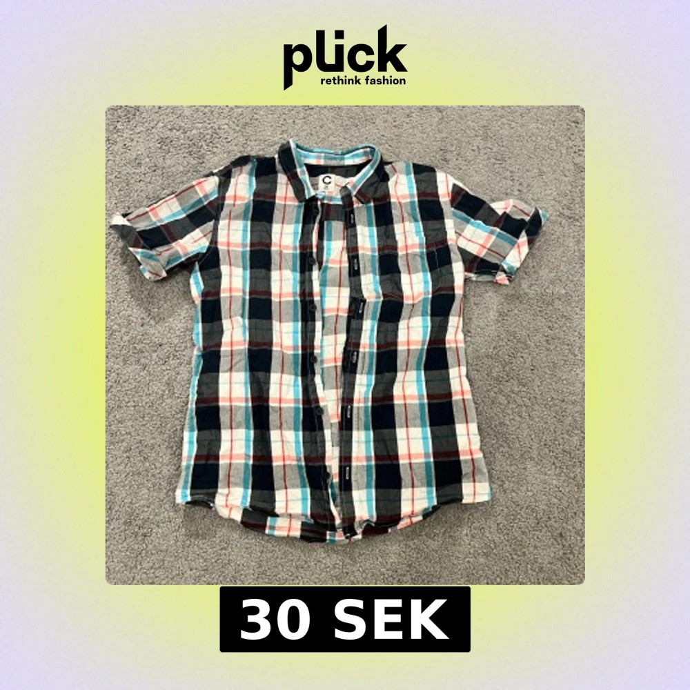 Kortärmad skjorta i bomull med rutigt mönster i svart, grått, vitt, rött och blått. Klassisk krage, knäppning framtill och bröstficka. Perfekt för en avslappnad och cool stil.