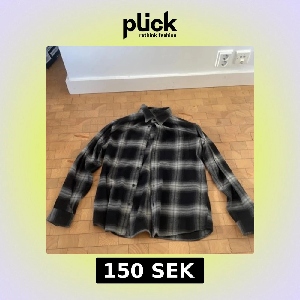 Säljer en oversized rutig overshirt från Uniqlo i svart och grå toner. Skjortan har långa ärmar, knäppning framtill och två bröstfickor. Perfekt att slänga över en t-shirt för en chill look. Materialet är mjukt och känns som bomull.