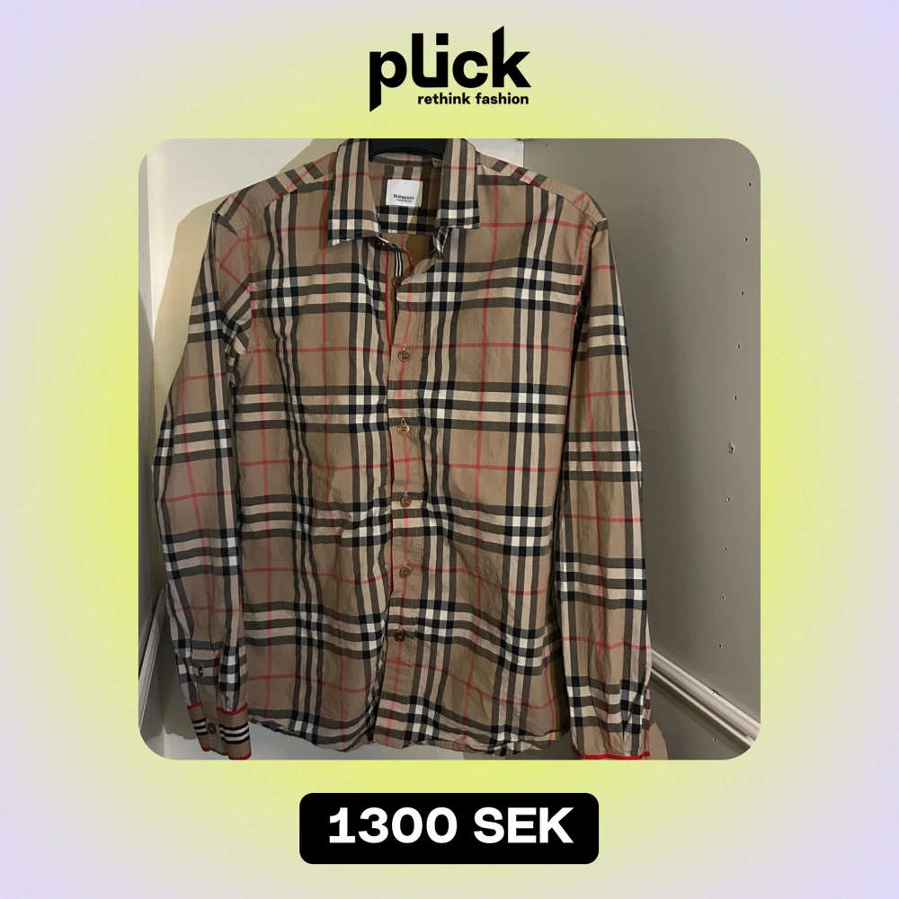 Säljer en klassisk rutig skjorta från Burberry i beige, svart och rött. Skjortan är långärmad och har knappar framtill. Perfekt för både vardag och fest! 🕺