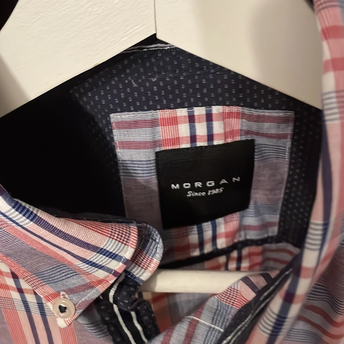 Säljer en snygg rutig skjorta från Morgan i rosa, blått och vitt. Tillverkad i mjuk bomull. Perfekt för dig som gillar en avslappnad men ändå stilren look. Pris kan diskuteras vid köp av bundel.💪🏻