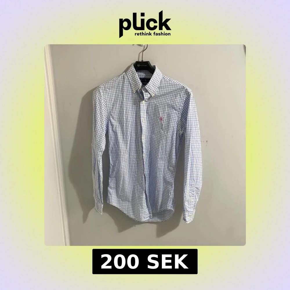 Snygg rutig skjorta från Ralph Lauren i blått och vitt. Skjortan har en slim fit passform och är långärmad med knappar framtill. Den har en broderad logotyp i rosa på bröstet. Perfekt för en stilren look!
