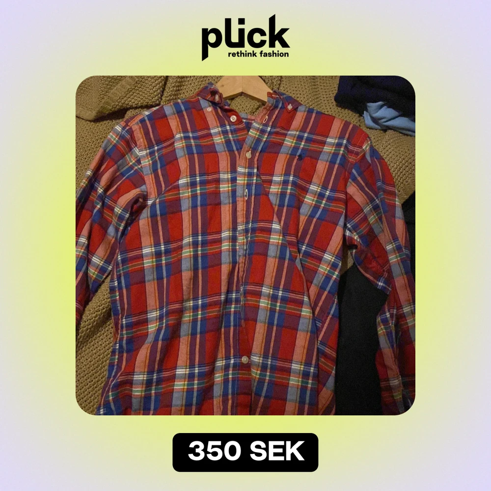 Säljer en snygg rutig skjorta från Ralph Lauren i rött, blått och grönt. Skjortan är långärmad och har klassiska knappar framtill. Perfekt för både vardag och fest! 🕺