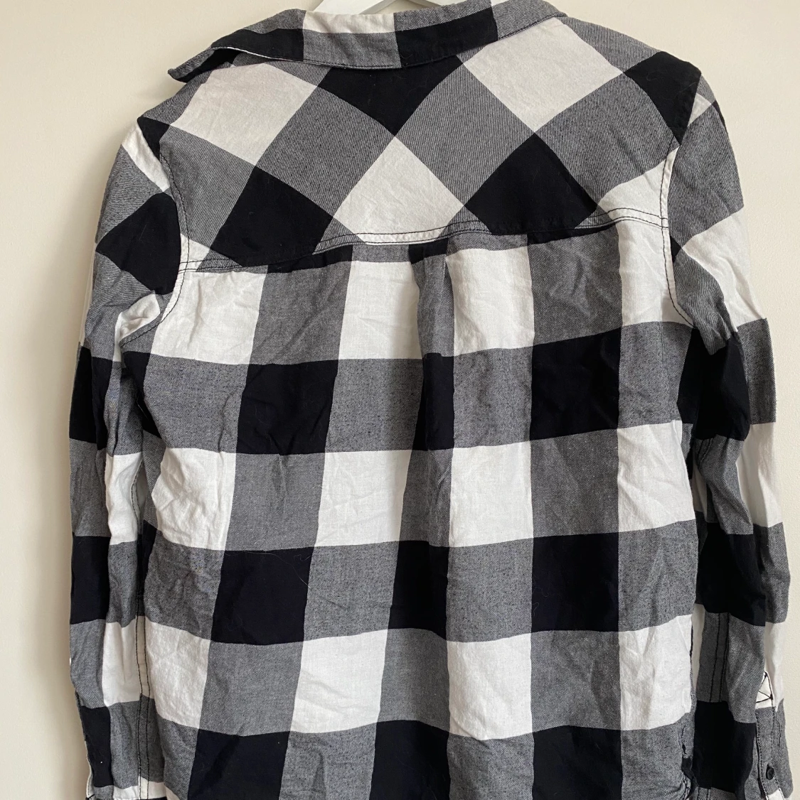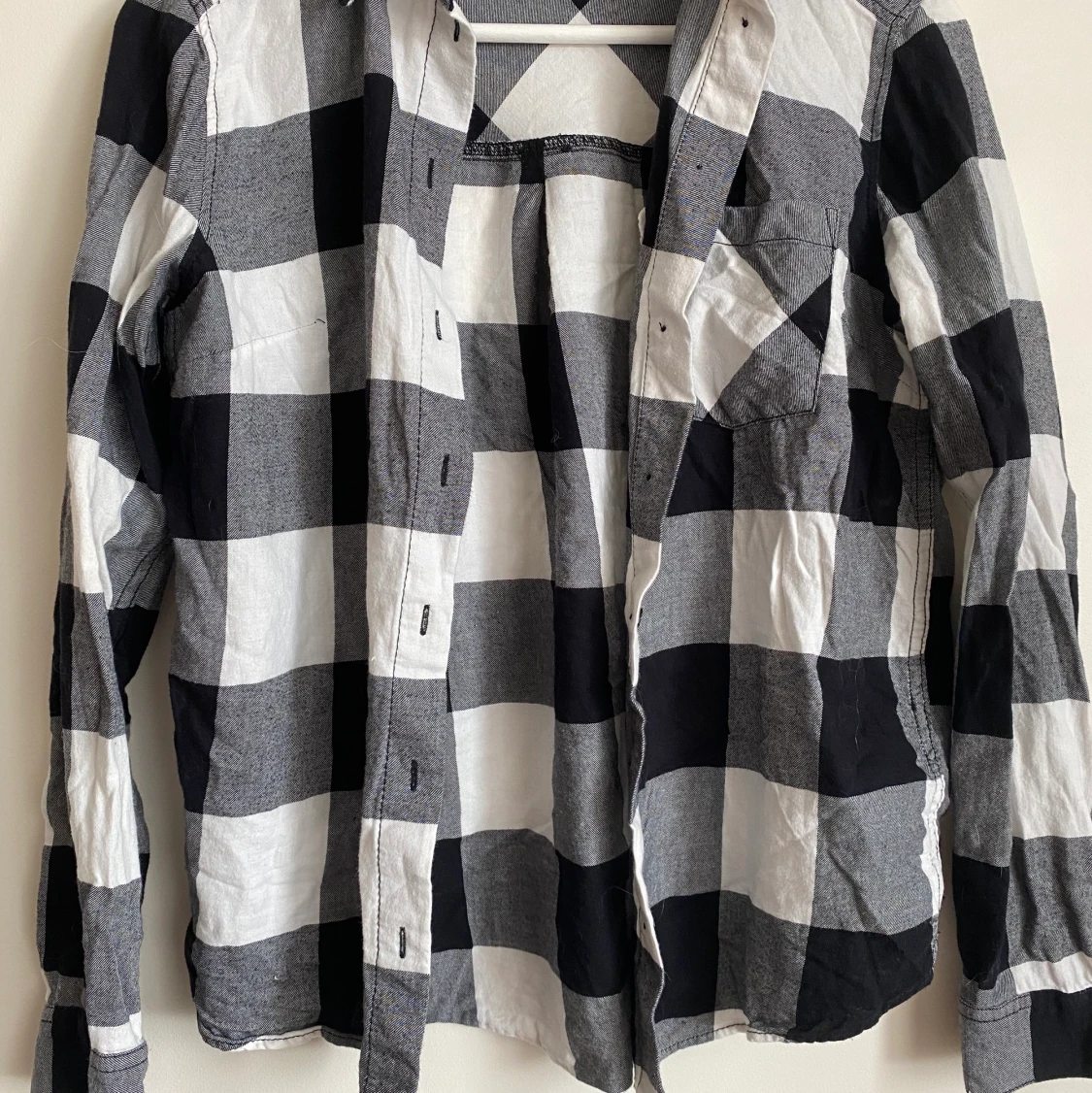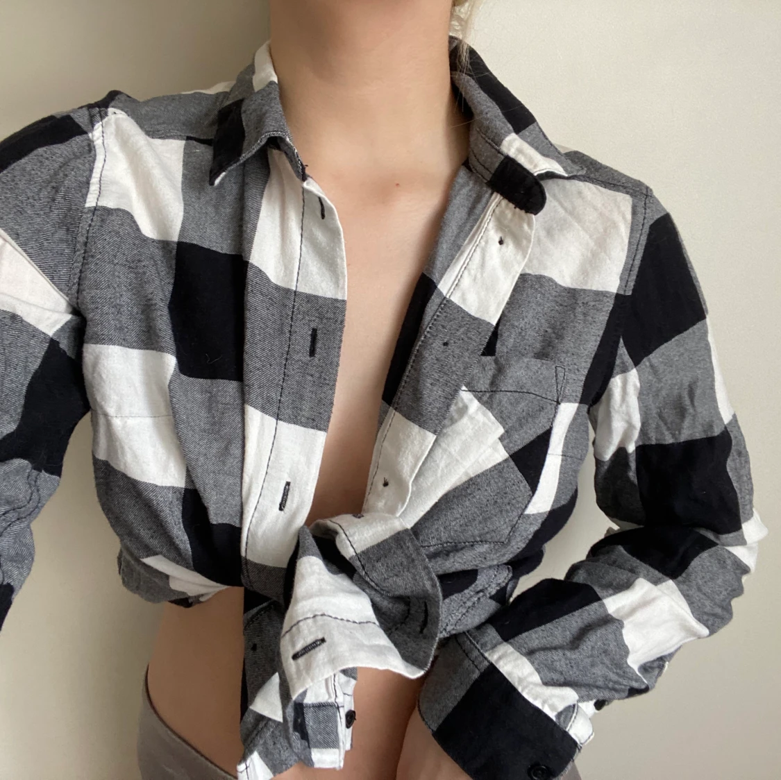 Rutig skjorta från hm. Är 155cm och den tänker precis rumpan (längd).