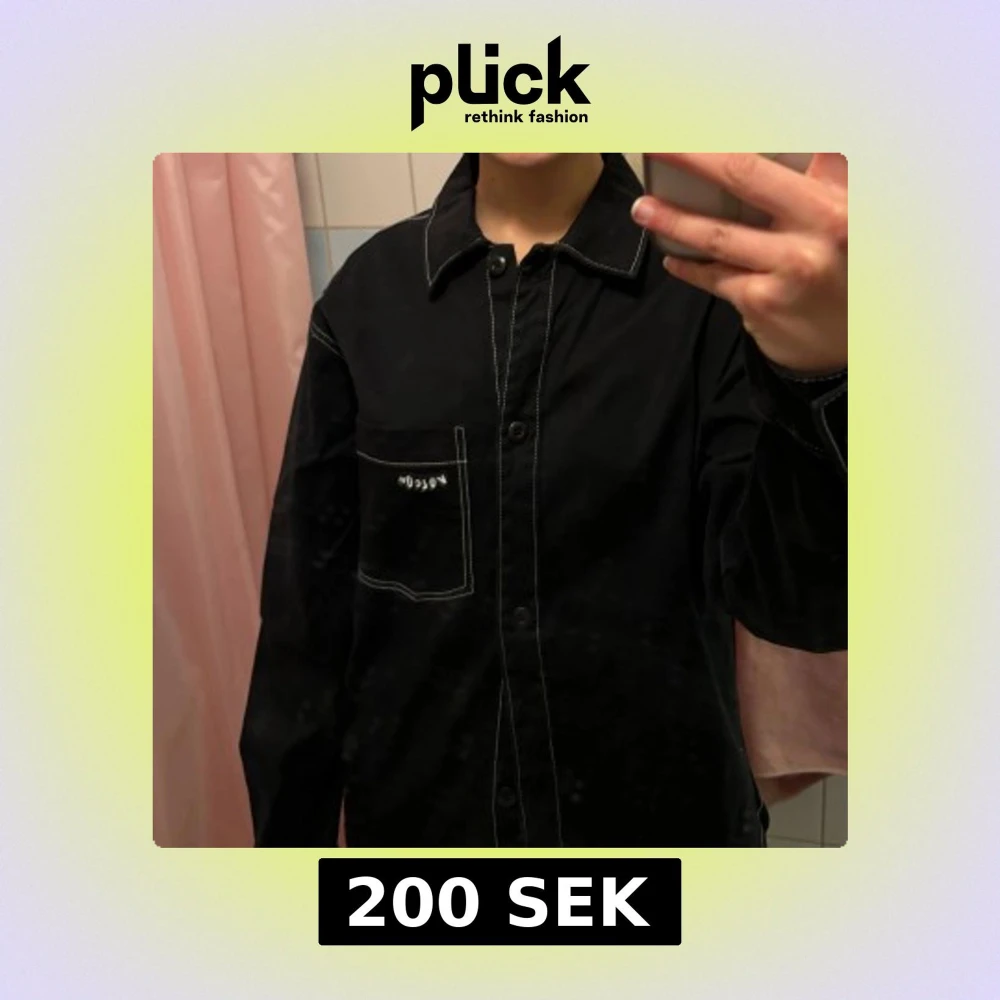 Svart overshirt från Noccon med kontrasterande vita sömmar och en stor bröstficka med broderad logga. Klassisk krage, knäppning framtill och långa ärmar. Snygg och enkel att styla, perfekt för lager-på-lager. Materialet känns som bomull.