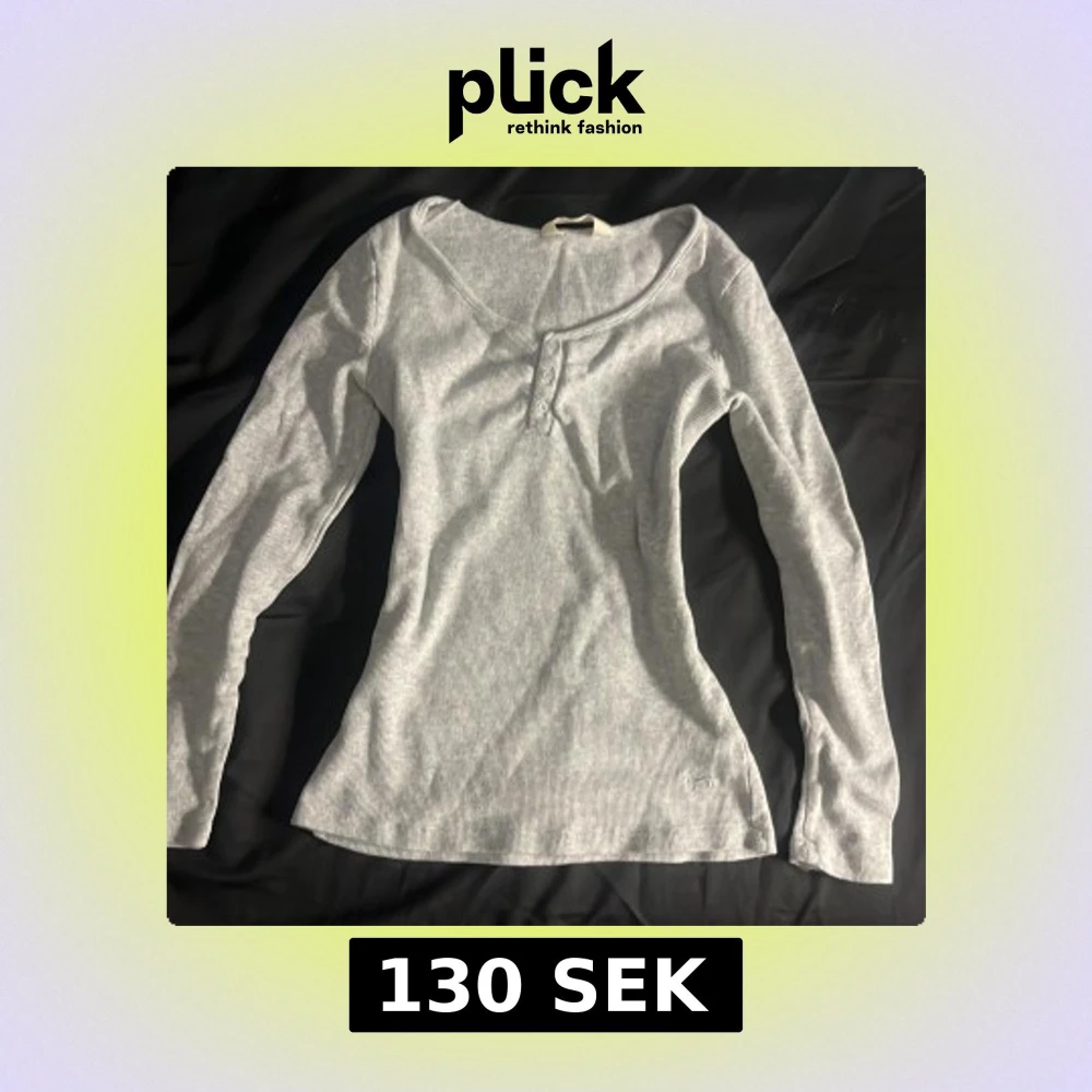 Säljer en snygg grå ribbad tröja från Peter Alexander. Tröjan har långa ärmar och en knappdetalj framtill. Assnygg med ett par mörka jeans.