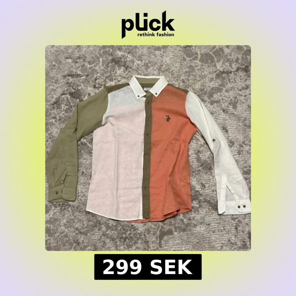 Snygg skjorta från U.S. Polo Assn. med blockfärger i olivgrönt, vitt och orange. Klassisk krage, broderad logga på bröstet och knappar framtill. Tillverkad i linne för en skön och luftig känsla. Perfekt för dig som gillar att sticka ut med färg och stil.