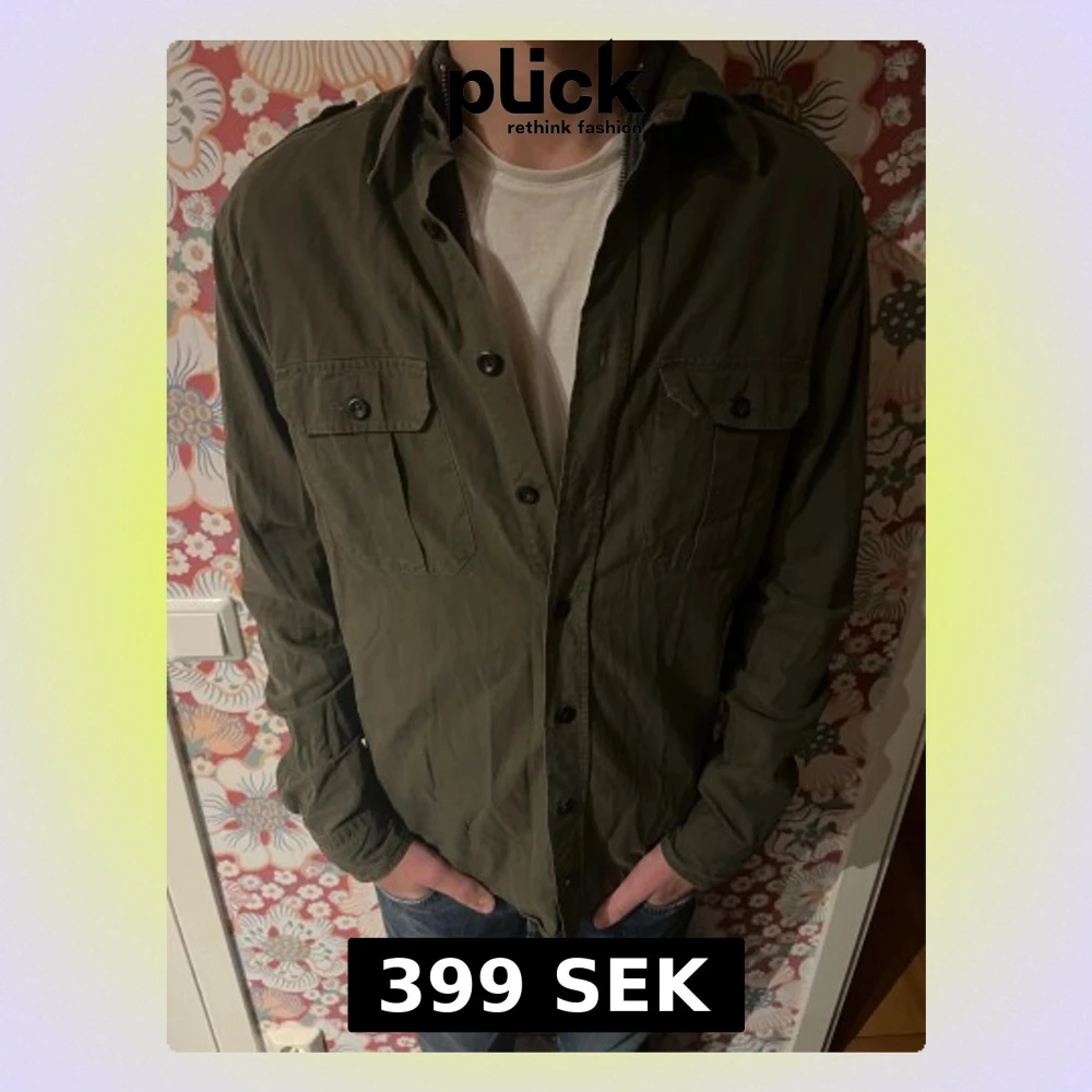 Säljer en olivgrön overshirt från Eton i slim fit. Skjortan har två bröstfickor med knappar, axelklaffar och klassisk krage. Materialet är bomull och den har långa ärmar. Perfekt för dig som gillar stilrena och funktionella plagg.