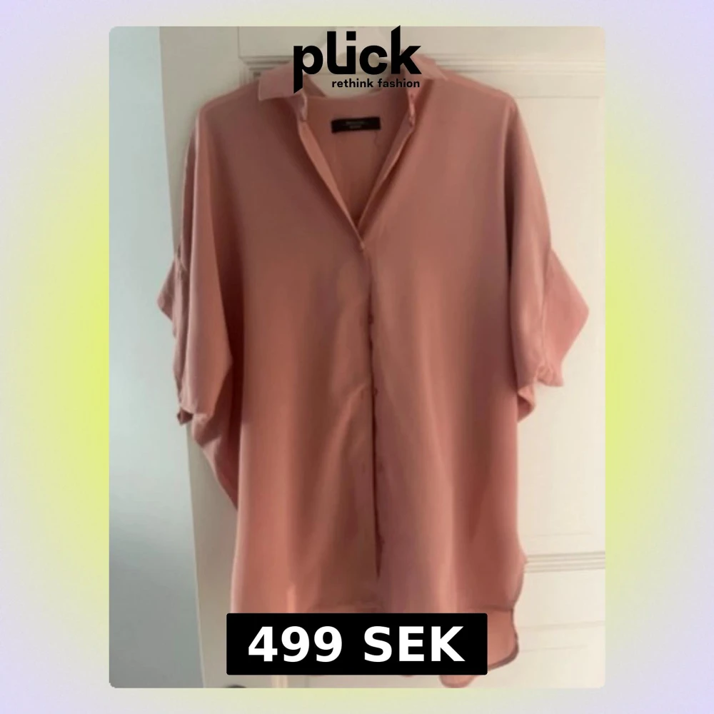Säljer en oversized rosa skjorta från Max Mara Weekend. Skjortan har klassisk krage, knappar framtill och korta ärmar. Materialet känns lätt och flowy, perfekt för en chill och stilren look. Skjortan är oversized