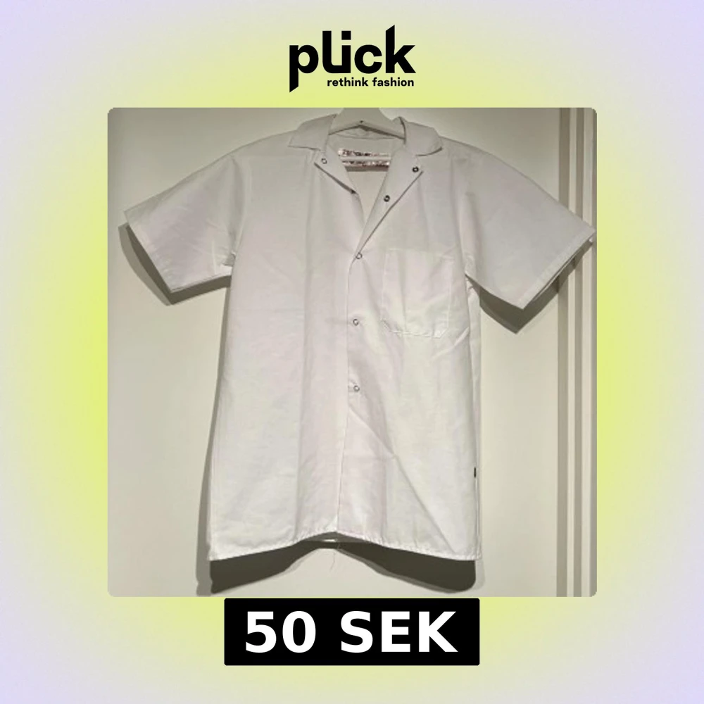 Snygg vit kortärmad skjorta med knappar och en bröstficka. Perfekt för en stilren och avslappnad look.