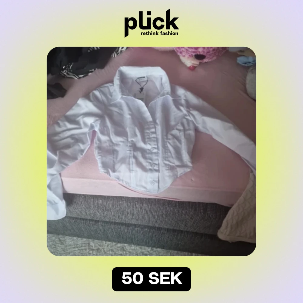 Säljer en superfin vit croppad skjorta från Noisy May. Den har långa ärmar och knappar framtill. Perfekt för både vardag och fest! 💫