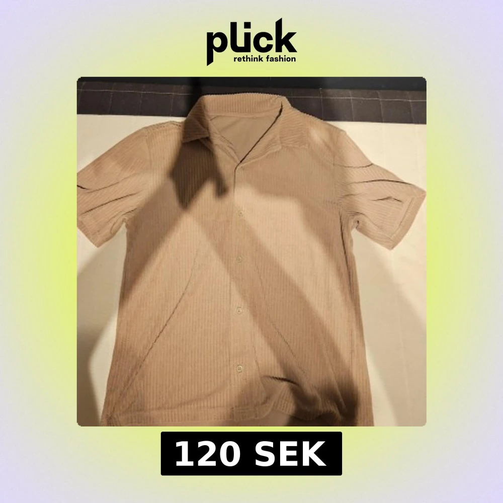 Kortärmad skjorta i beige manchester med diskreta vertikala ränder. Skjortan har klassisk krage och knäppning framtill med fyra knappar. Perfekt för dig som gillar retrovibbar och mjuka material.