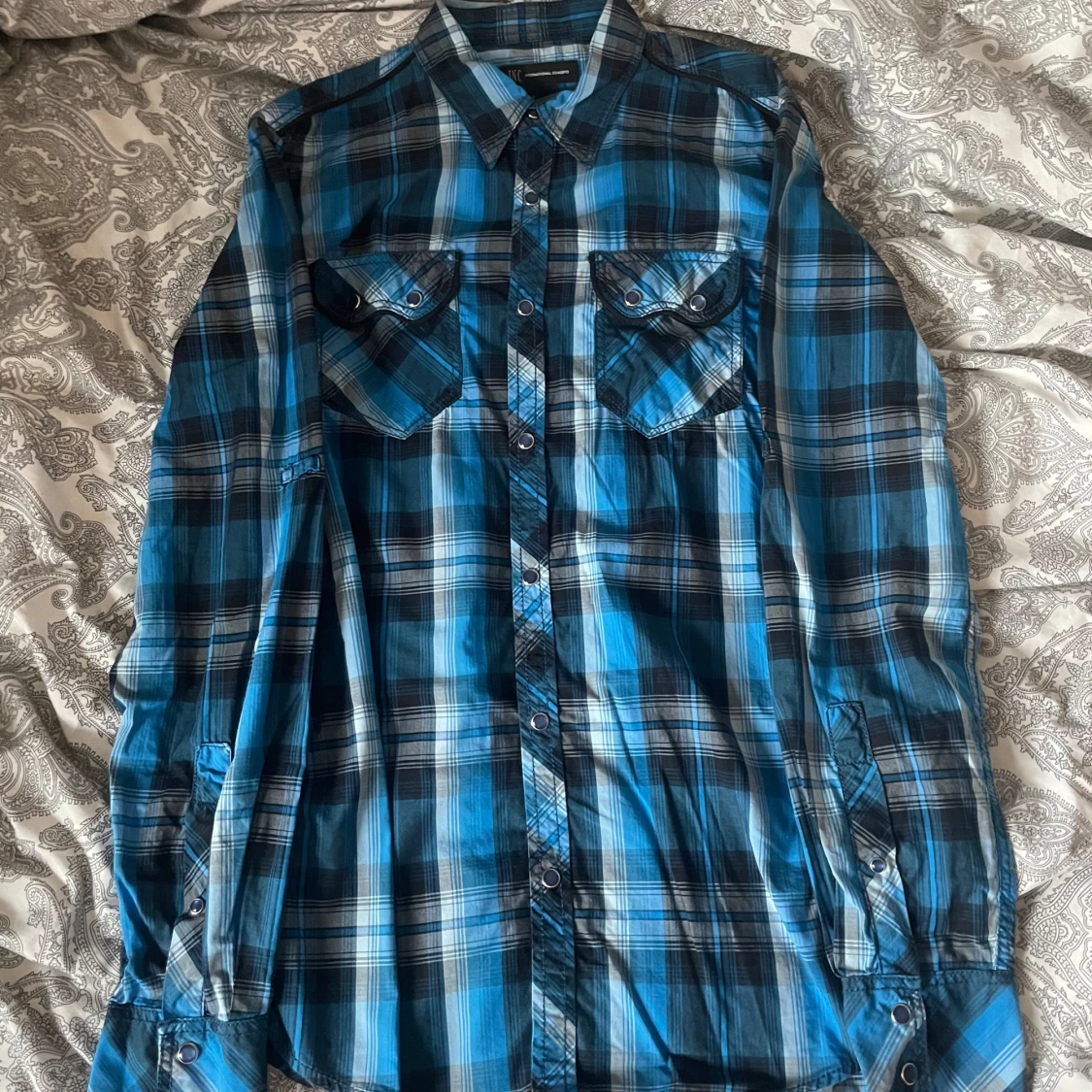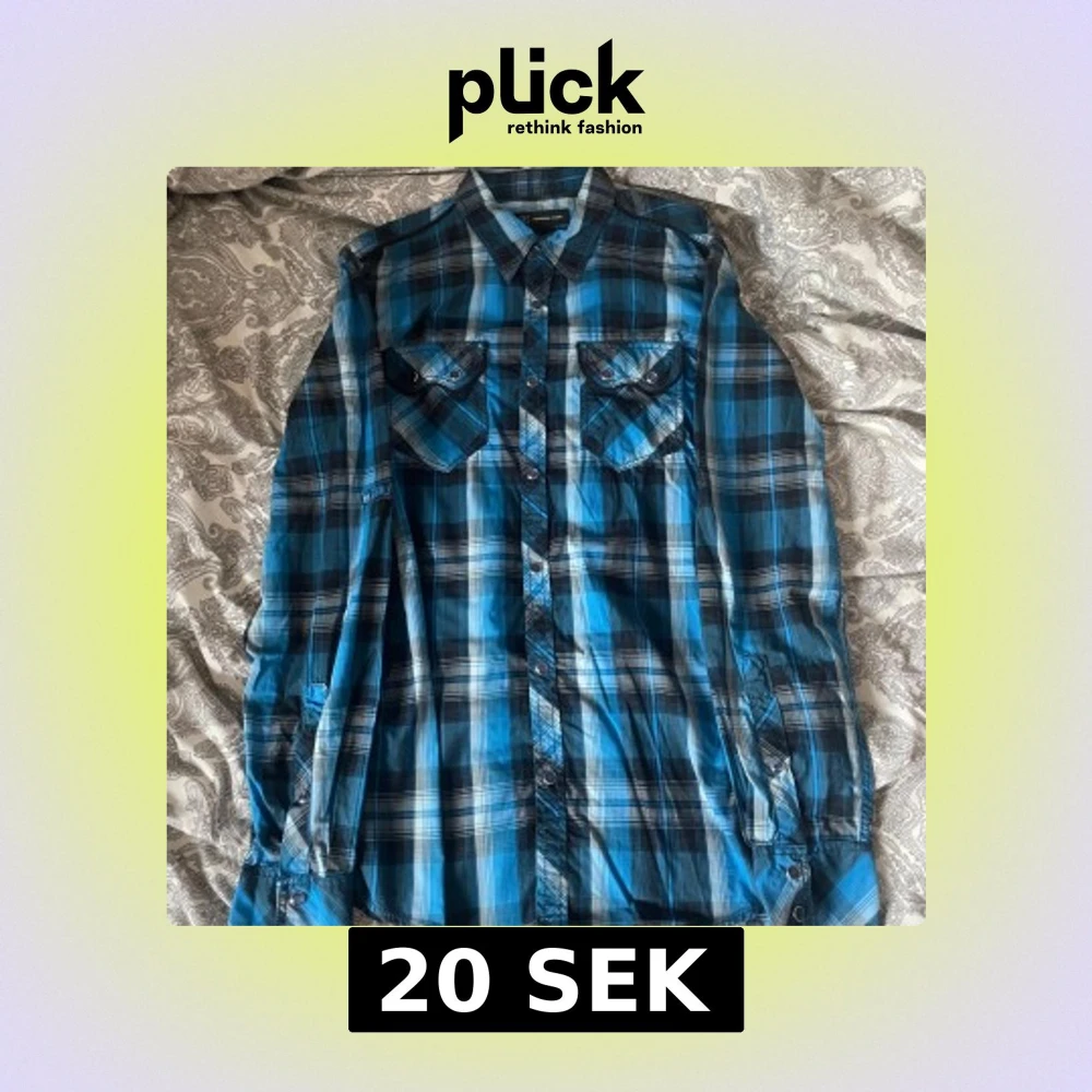 Snygg blå och svart rutig skjorta med långa ärmar och knappar framtill. Skjortan har två bröstfickor med lock och knapp, klassisk krage och en avslappnad passform. Perfekt för dig som gillar en cool och avslappnad stil. Säljer många skjortor så köp gärna flera i en bundle!