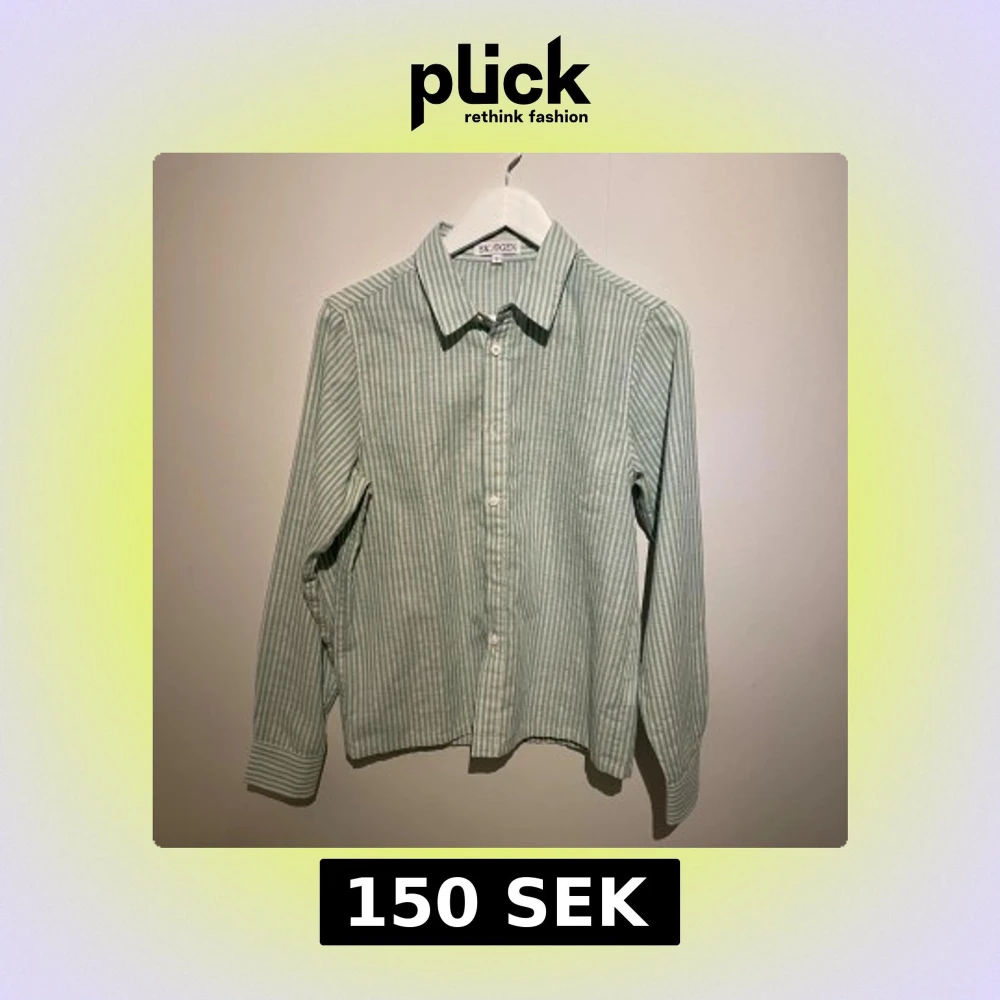 Snygg skjorta från Skagen Clothing i storlek S med tunna gröna och vita ränder.