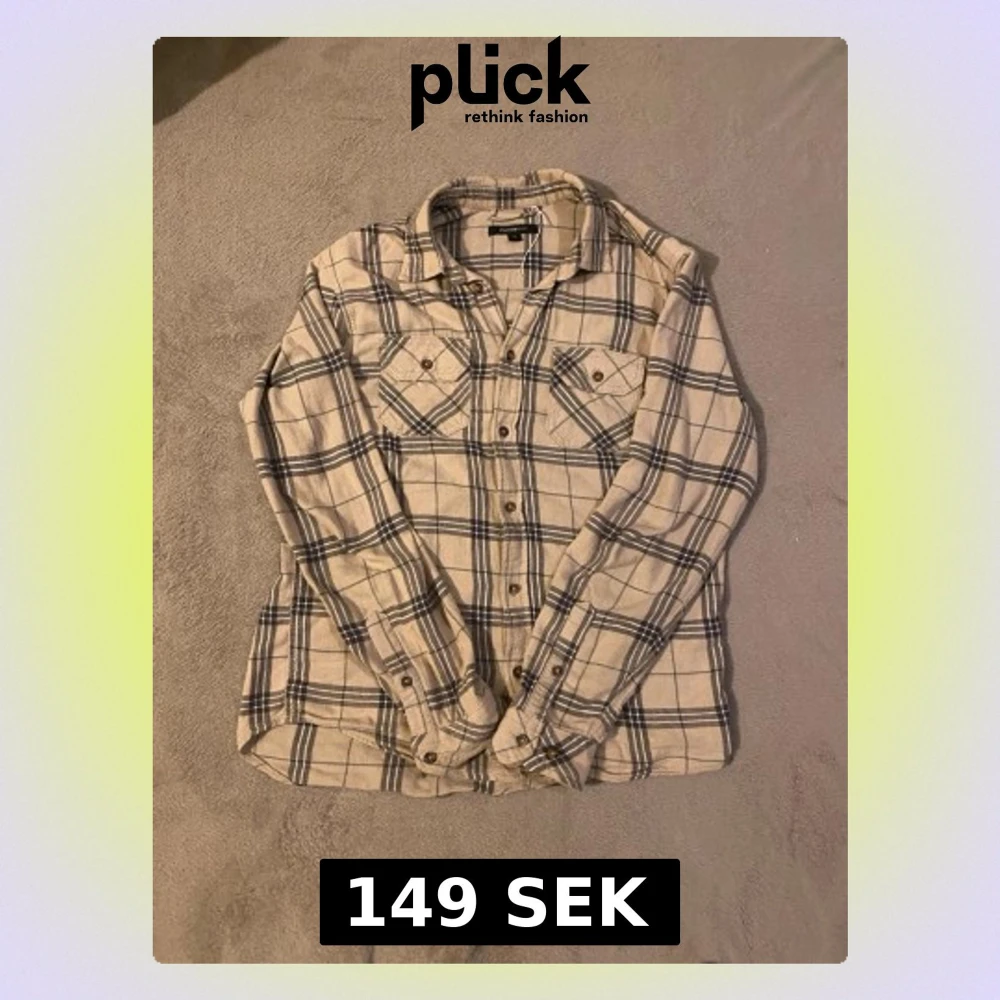 Säljer en beige skjorta från Mywearman i storlek S med svart och grått rutmönster. Skjortan har två bröstfickor med knappar, klassisk krage och långa ärmar. Materialet är mjuk bomull som känns skönt mot huden. Perfekt för dig som gillar avslappnad stil.