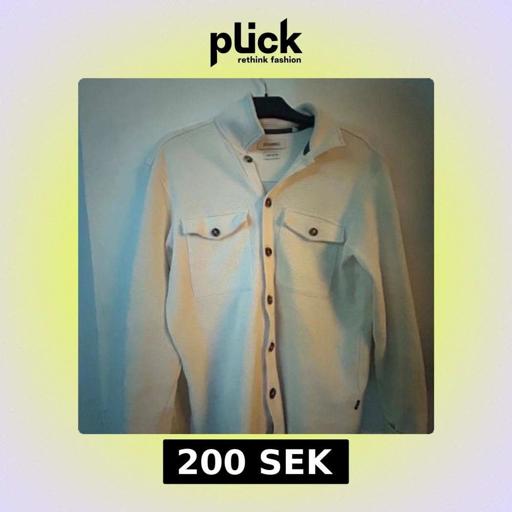 Snygg vit overshirt från Strömberg i bomull med grov struktur. Skjortan har klassisk krage, bruna knappar hela vägen och två stora bröstfickor med lock. Perfekt att slänga över en t-shirt för en chill look.