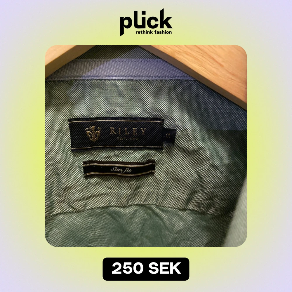 Säljer en stilren grön skjorta från Riley i storlek S. Skjortan har en slim fit passform och är perfekt för både vardag och fest. Den är långärmad med knappar framtill och en klassisk krage. Materialet känns bekvämt och passar bra till både jeans och chinos. Perfekt för vår och sommar! 🌿