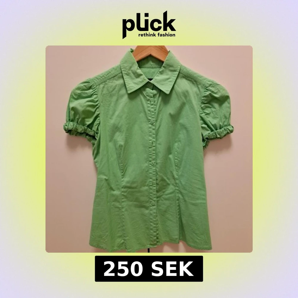 Snygg grön skjorta från Stefanel med puffiga korta ärmar. Skjortan är tillverkad i bomull.