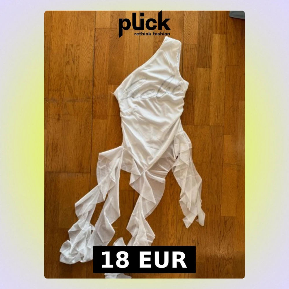 Supersnygg vit kortklänning från Bebe med ett axelband och glittrande Bebe-logga framtill. Klänningen har transparenta volangdetaljer i mesh som ger en unik look. Perfekt för dig som vill sticka ut med en edgy och trendig stil.