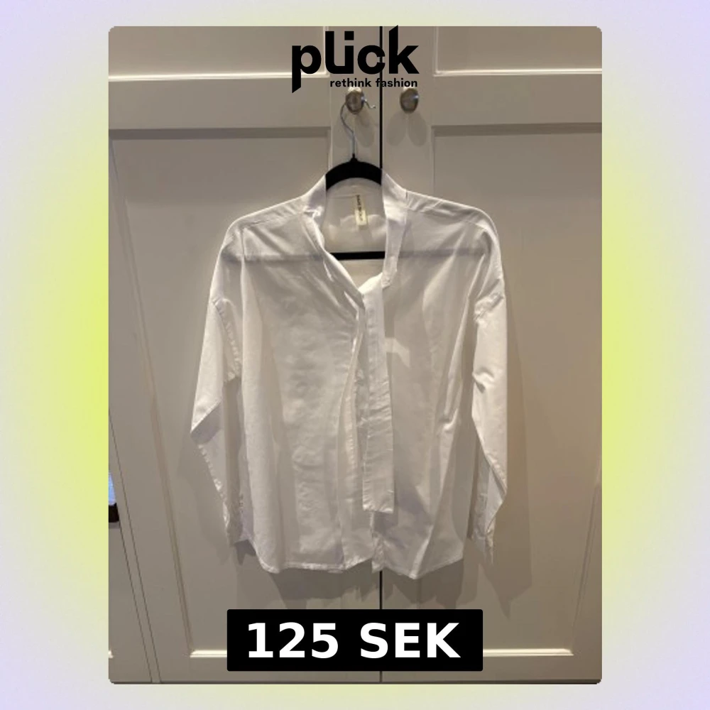 Vit knytblus mes ståkrage och knappar framtill. Skjortan har lång ärm och är tillverkad i mjuk bomull som känns skön mot huden. Perfekt för dig som gillar stilrena och enkla plagg med modern touch. Inköpt på Two Angels i Göteborg