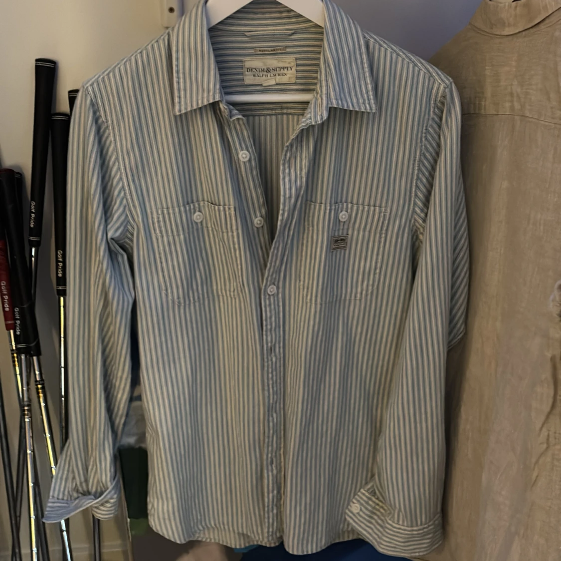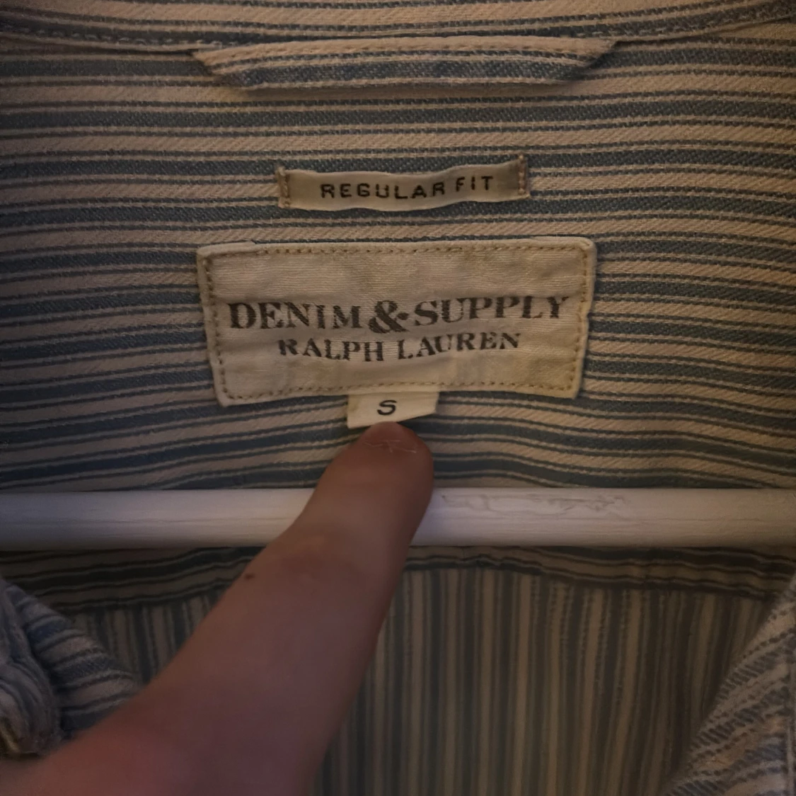 Snygg randig skjorta från Denim & Supply Ralph Lauren i blått och vitt. Skjortan har långa ärmar och knappar framtill samt två bröstfickor. Perfekt för en avslappnad stil. Nypris på denna är runt 1500kr. Perfekt till sommaren! Skriv vid funderingar💪🔥