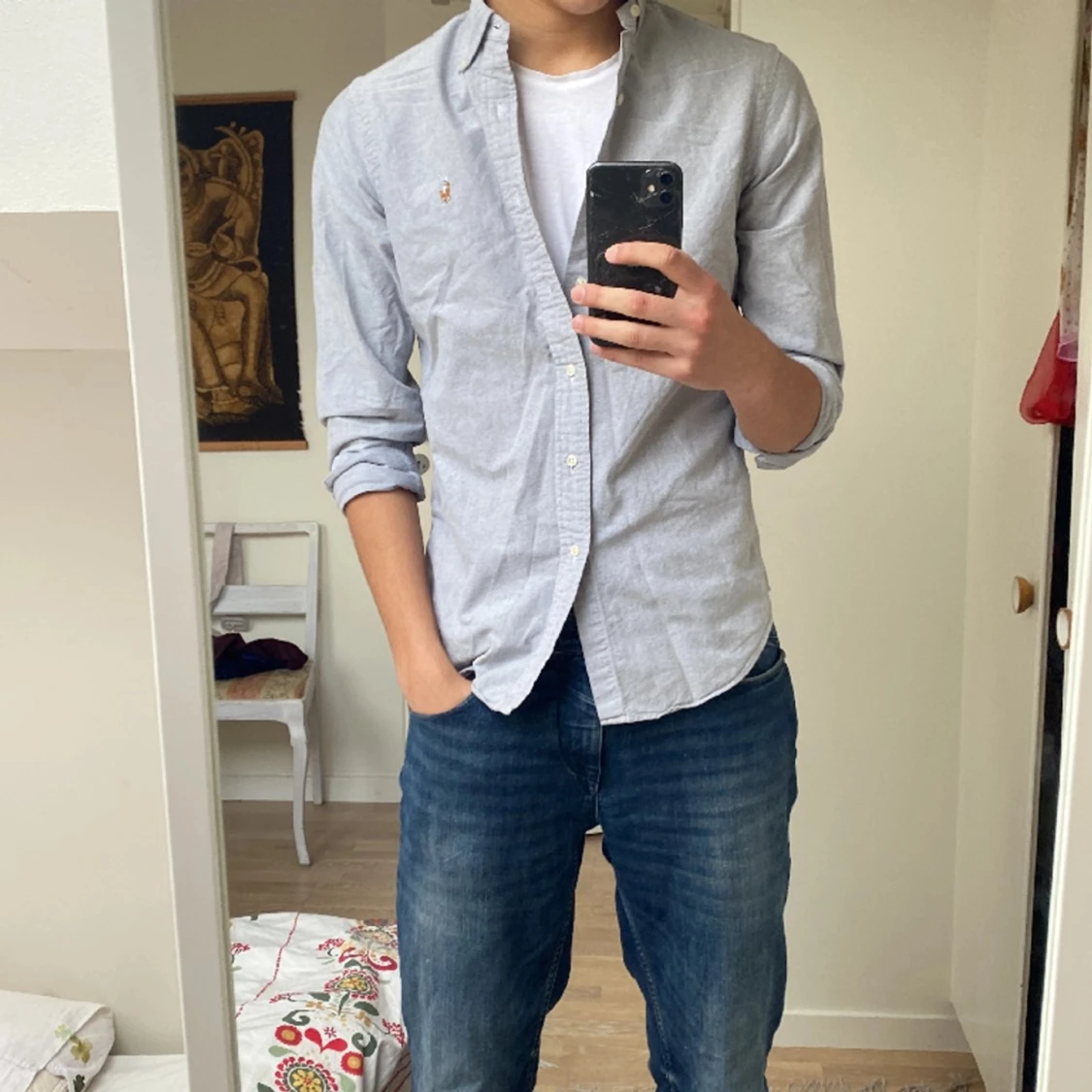 Säljer en Ralph Lauren skjorta i storlek S. Den har några små slitningar vid insidan av kragen men syns inte direkt.
