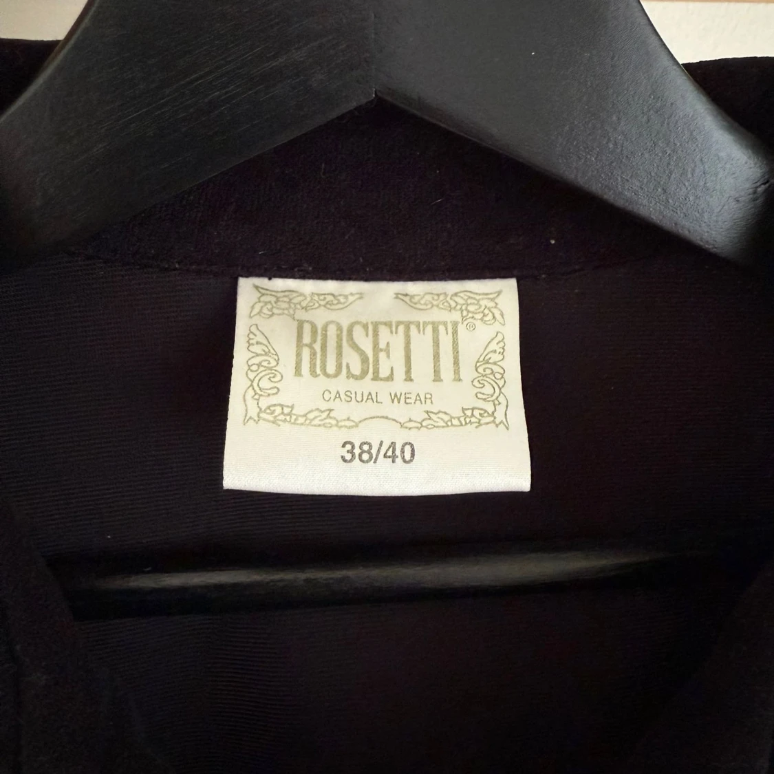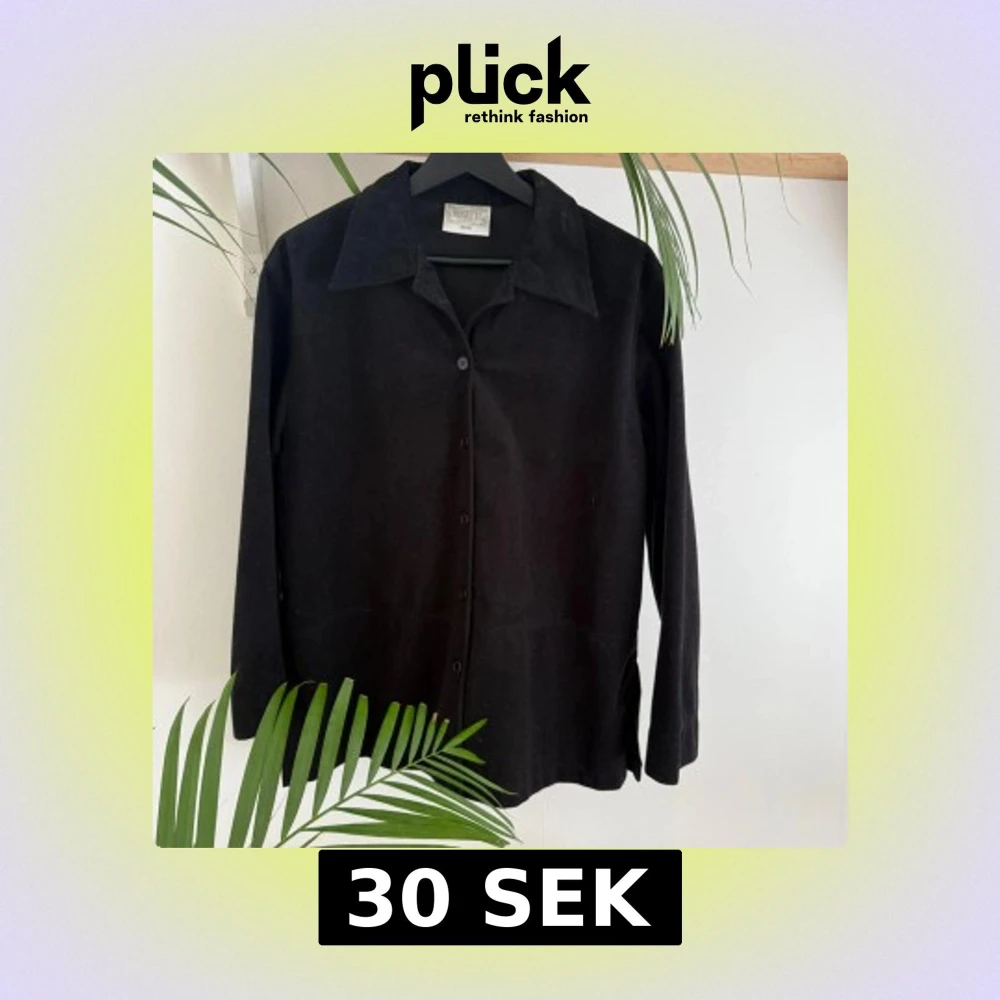 svart skjorta från Rosetti, tyget är polyester men känns och ser ut som manchester/sammet. Klassisk krage, knäppning framtill och långa ärmar. Rak passform.