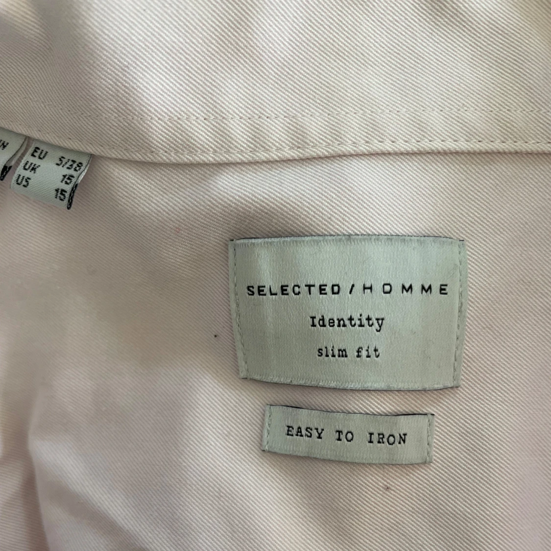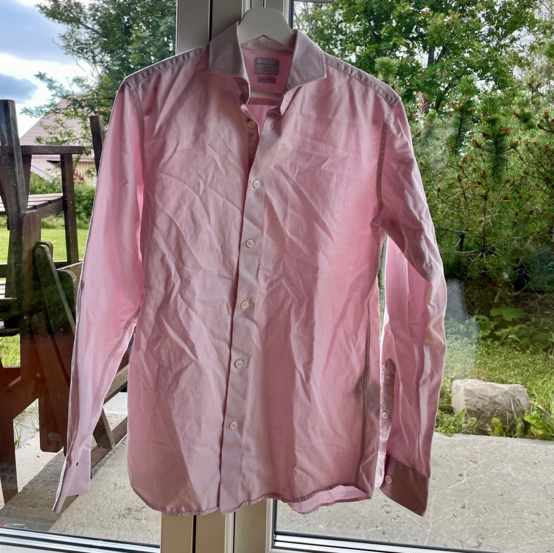 Snygg ljusrosa skjorta från Selected Homme i slim fit-modell. Skjortan har klassisk krage, långa ärmar och vita knappar framtill. Tillverkad i bomull och är enkel att stryka. Funkar som en snygg skjorta att ha uppknäppt till ett linne eller som vanligt. Säljes åt min pojkväns lillebror som växt ur.💞