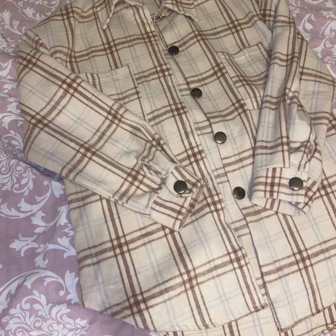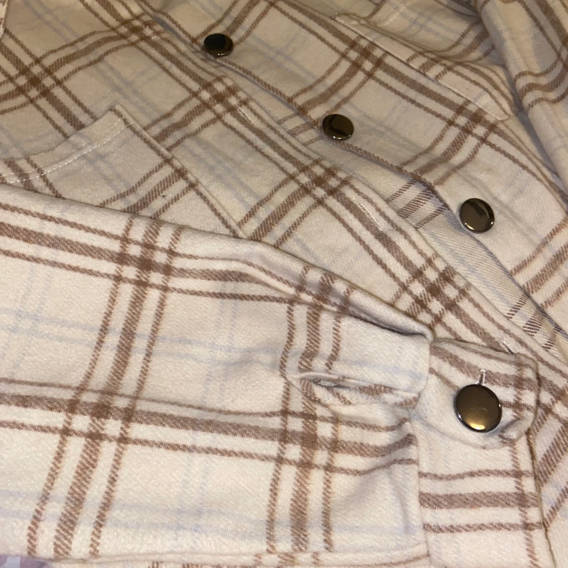 En fin randig skjorta köpt från SHEIN i bra kvalitet och skick! Brun, beige, ljusblå