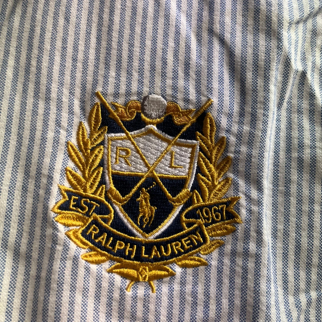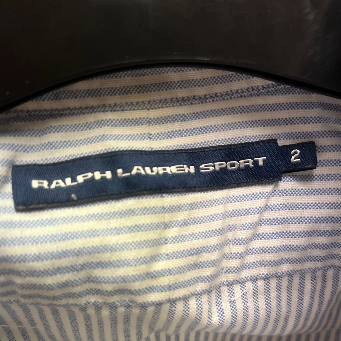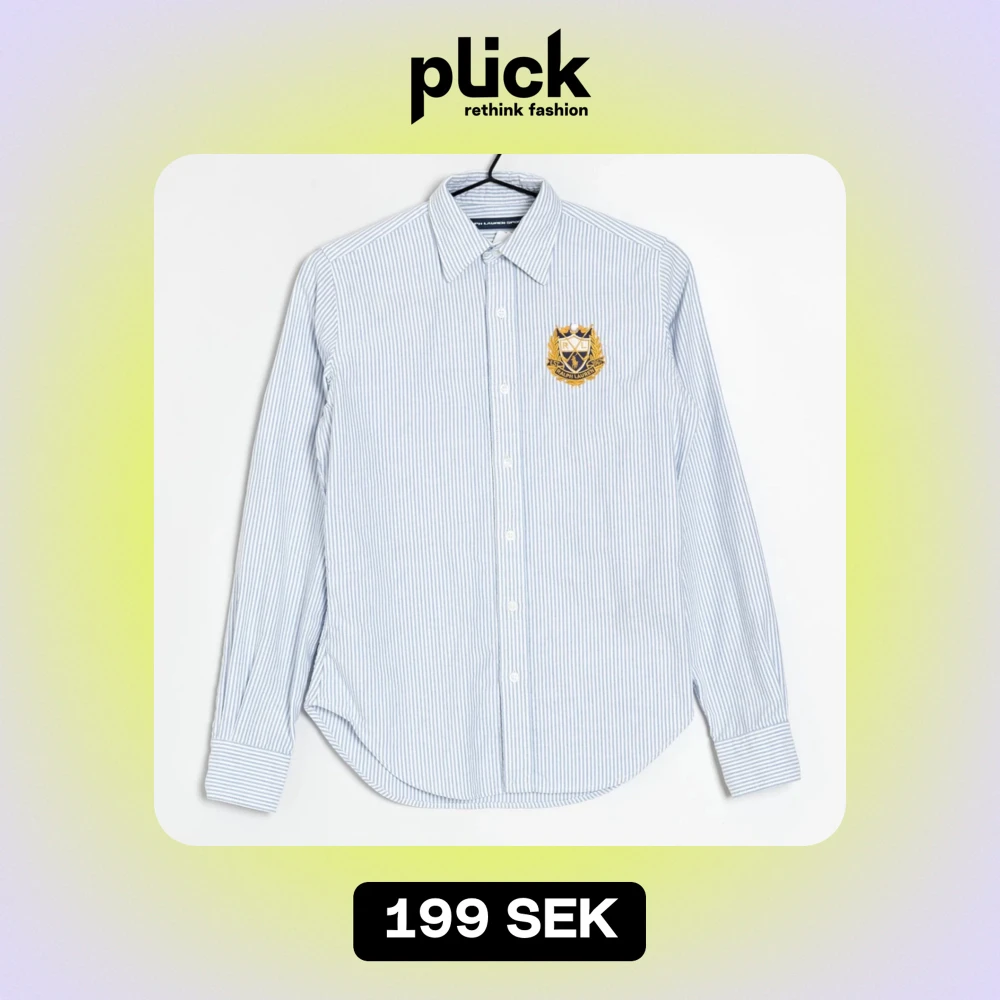 Säljer en stilren och klassisk blå- och vitrandig skjorta från Ralph Lauren. Skjortan har ett broderat emblem på bröstet och är i mycket bra skick.