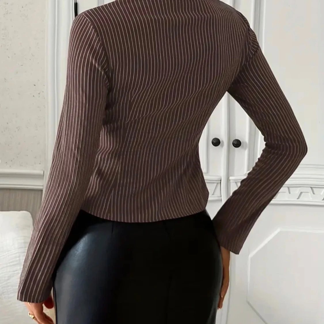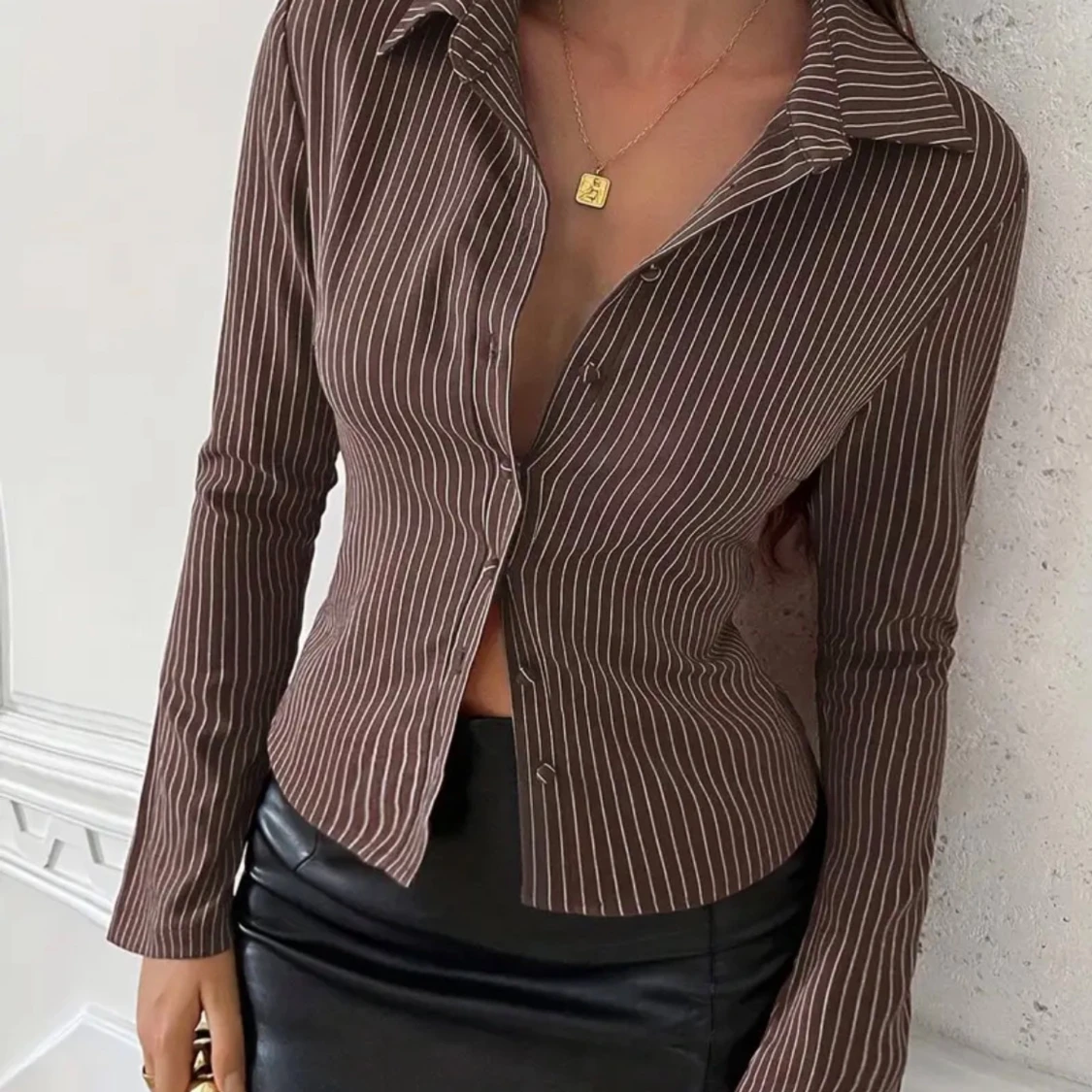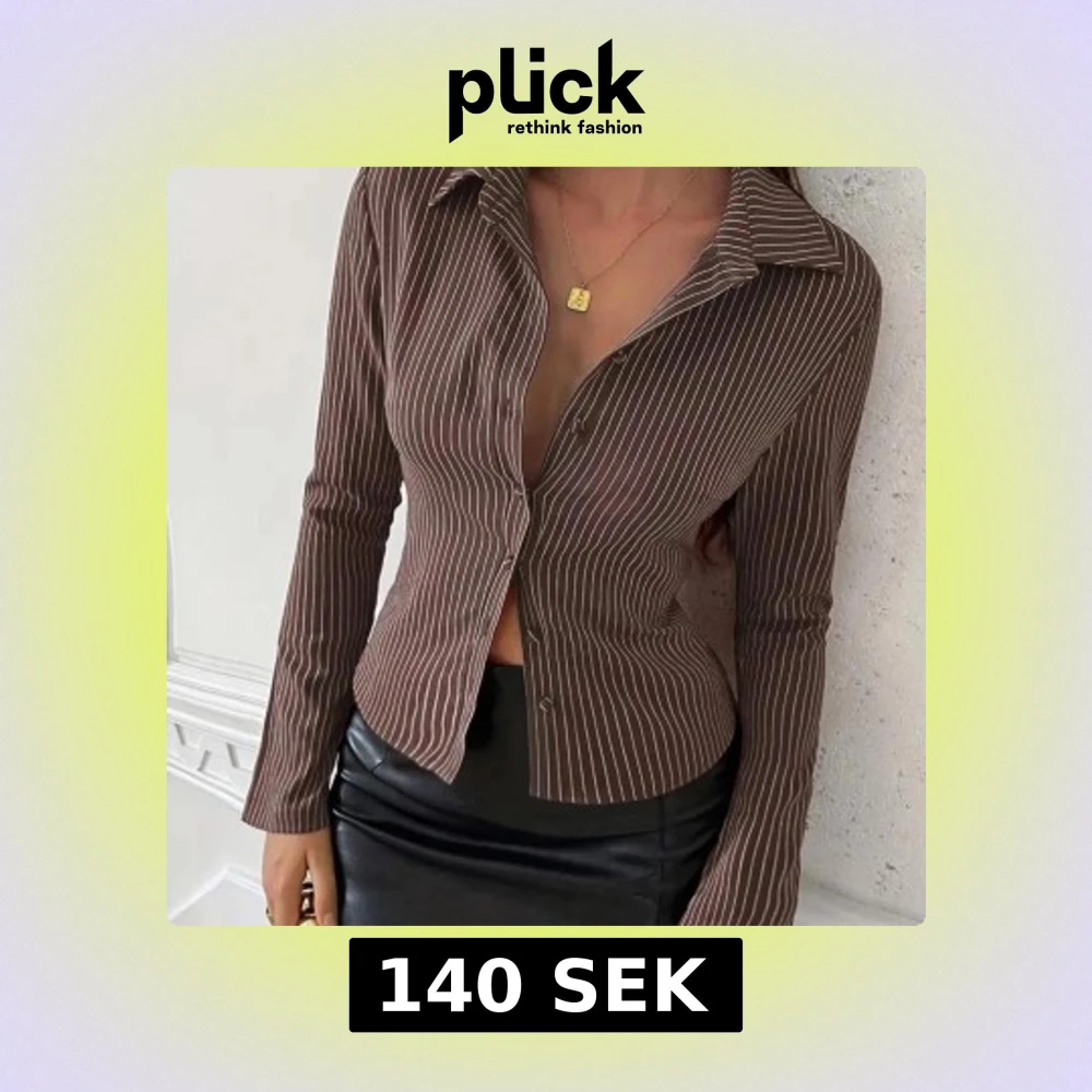Brun randig skjorta med vita ränder och figursydd passform. Helt ny och säljer då den tyvärr inte passar mig! (Därav inga bilder på)