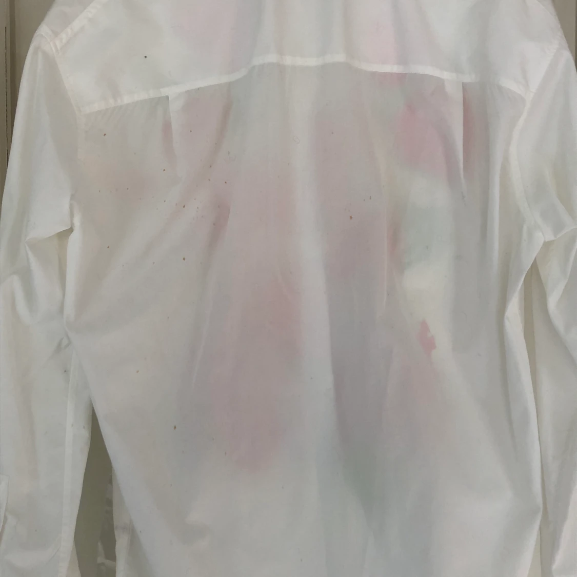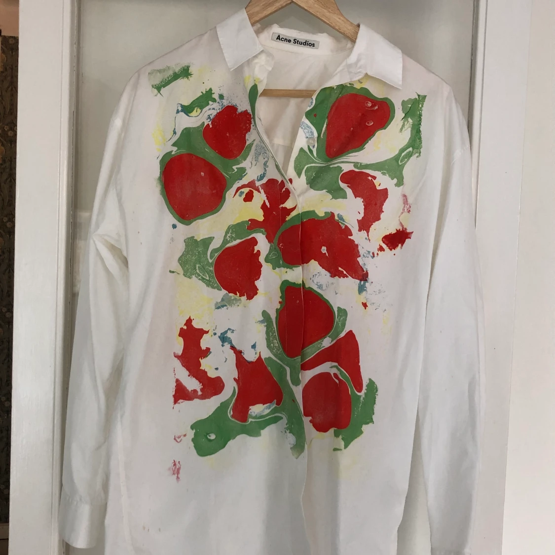 Acne skjorta, jättefin MEN har fått fläckar på ryggen. Går säkert att få bort på kemtvätt. Kan dock inte garantera.