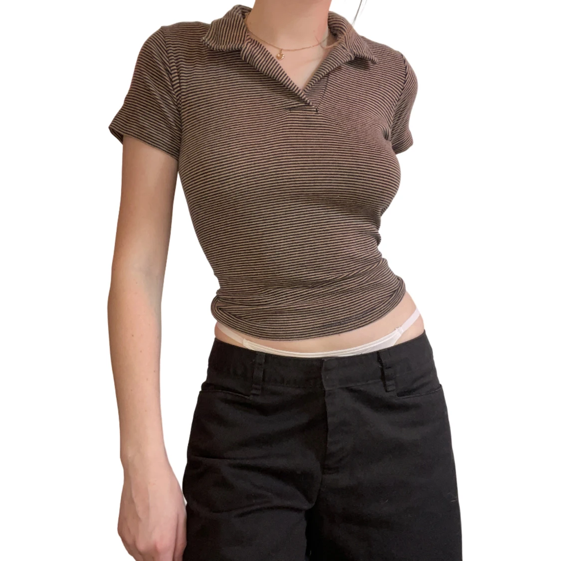 Brun randig tröja från Brandy! Grunge vibe, söt och y2k. Passar mig som är S men passar även XS och M om man vill bära den som croptop! Mycket stretchig och bra kvalitet då jag bara använt ett fåtal gånger💓💓Love this one!