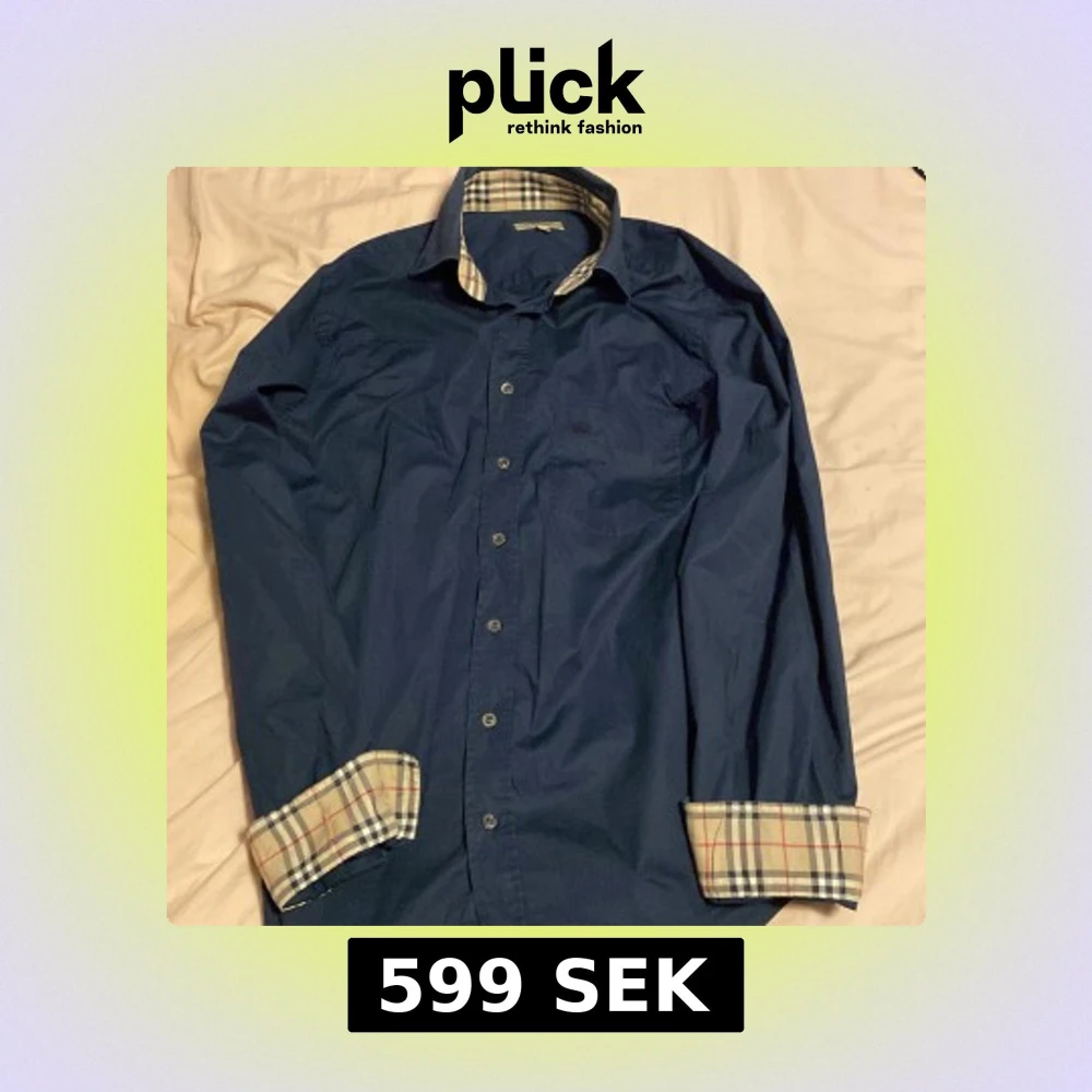 Snygg mörkblå skjorta från Burberry i klassisk modell med rutiga detaljer på insidan av krage och ärmslut. Skjortan har knappar framtill och är tillverkad i bomull med lite stretch för extra komfort.
