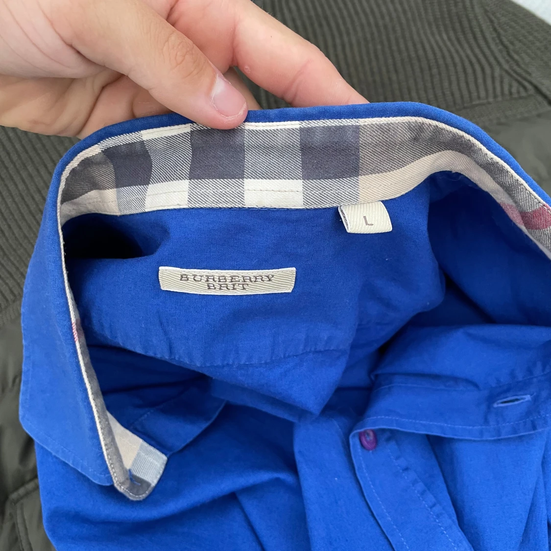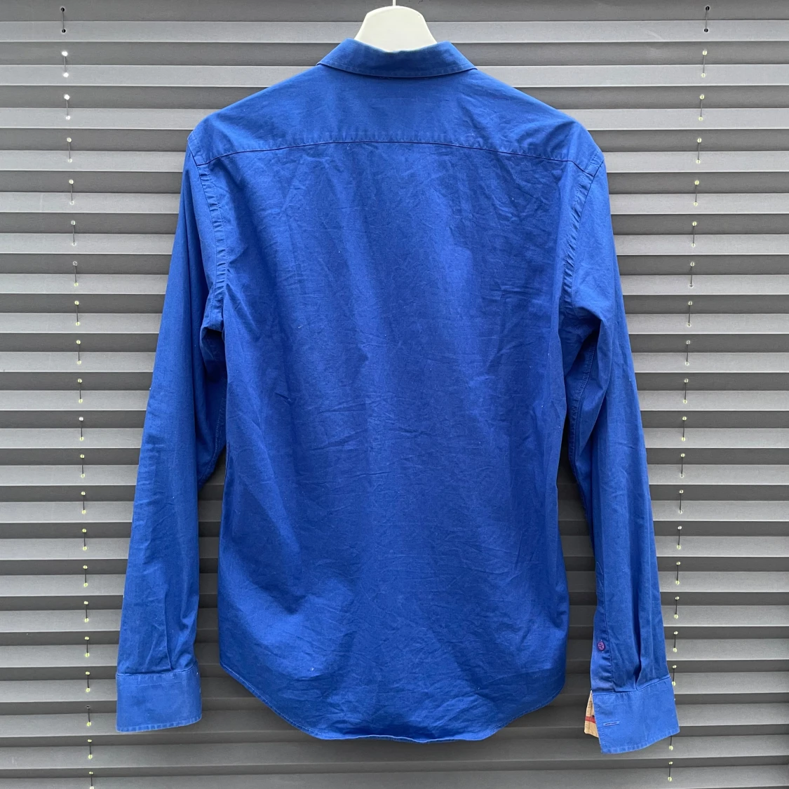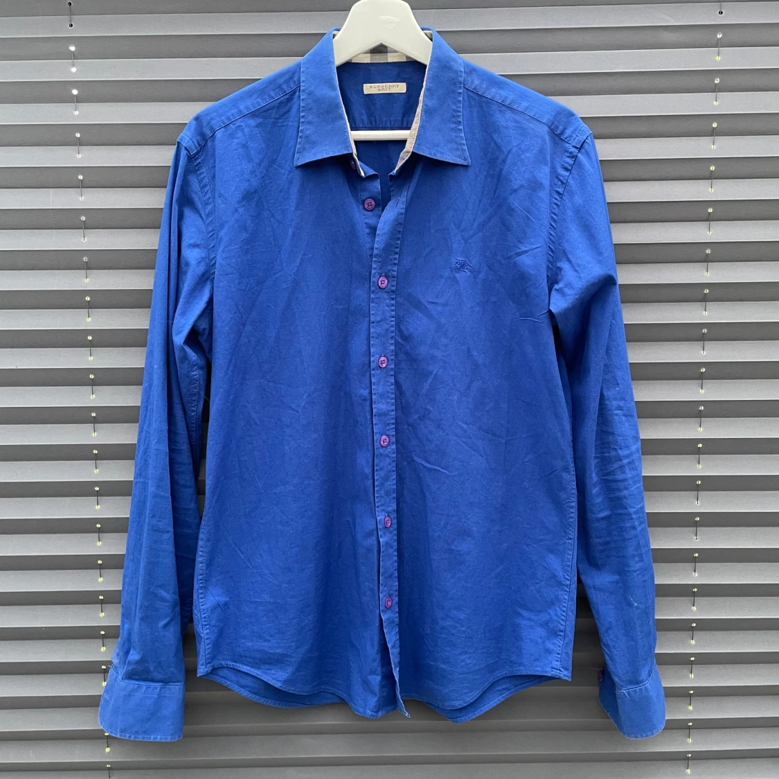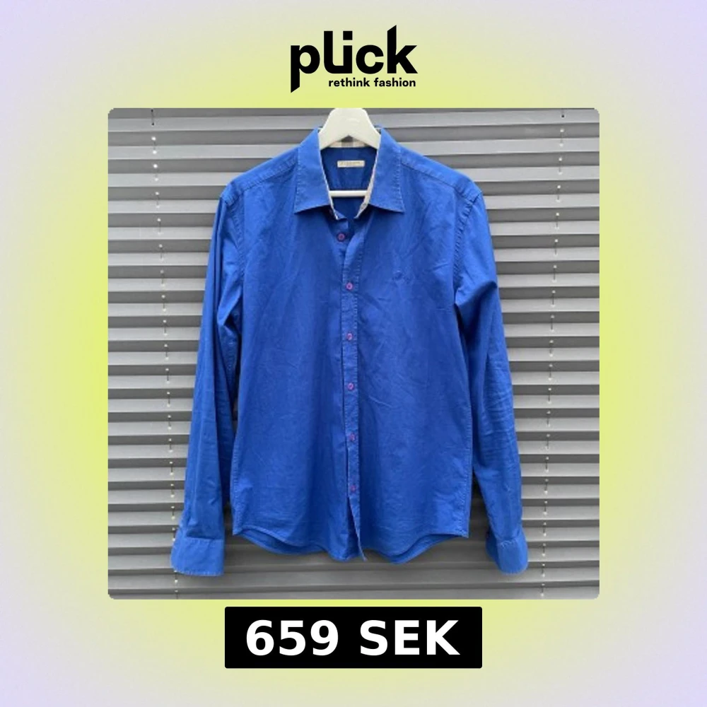 Snygg blå skjorta från Burberry med klassisk krage och långa ärmar i väldigt bra skick. Storlek: L men skulle säga att M är inga problem heller. Kragen har ett rutigt mönster på insidan i beige, svart och rött. Skjortan har lila knappar. Perfekt för dig som gillar stilrena plagg som man kan matcha med de mesta. Kom dm vid minsta fråga eller fundering och ♦️kom gärna med bud! ♦️