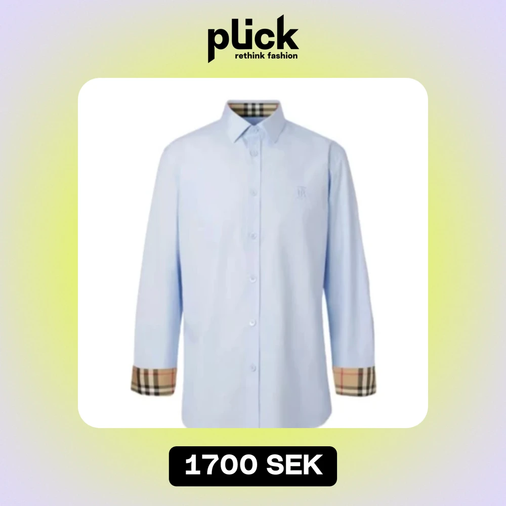 Säljer en stilren ljusblå skjorta från Burberry. Den har långa ärmar och klassiska knappar framtill. Detaljerna vid ärmsluten är i det ikoniska Burberry-rutiga mönstret. Perfekt för både vardag och fest! Orginl pris 5000kr