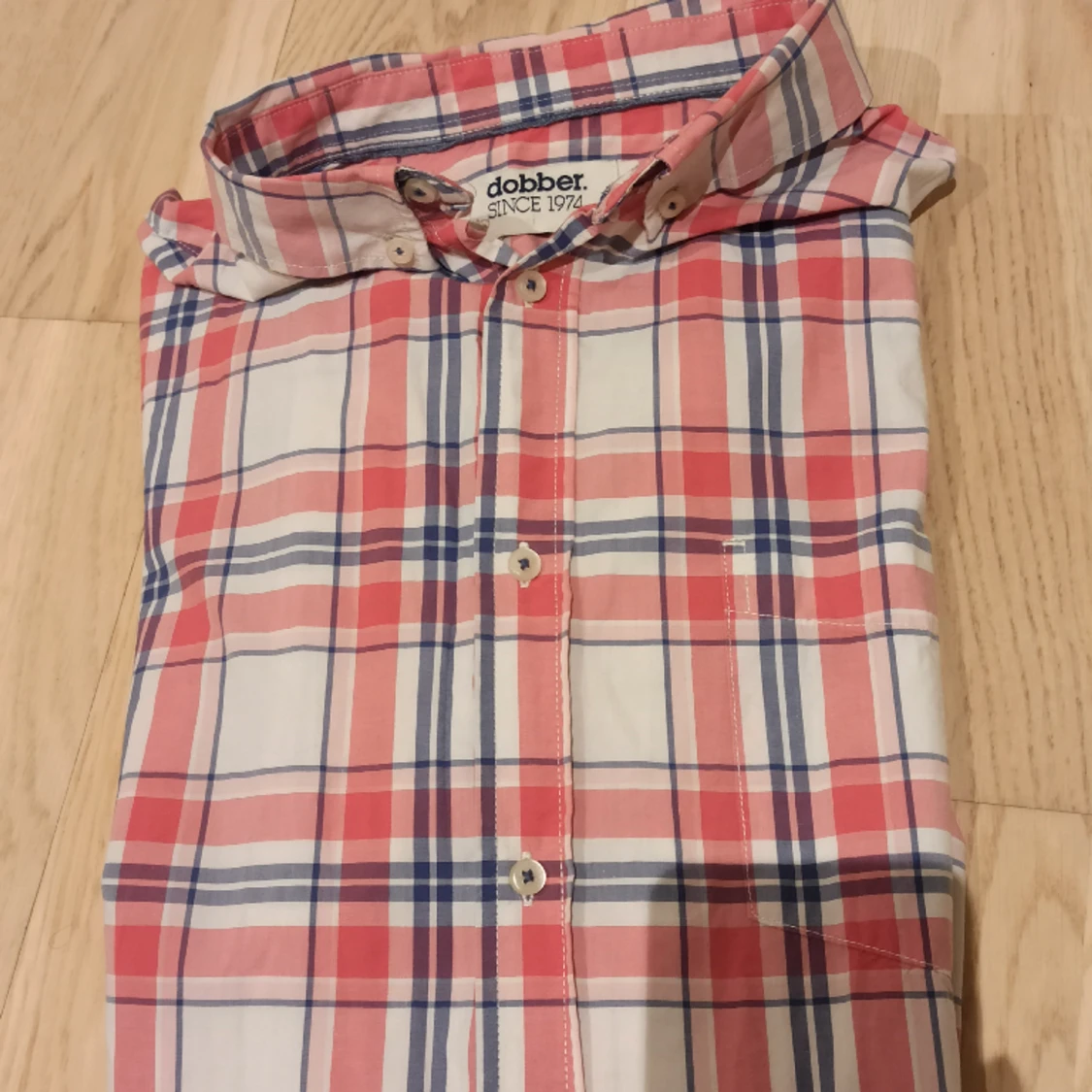En så snygg kortärmad och rutig skjorta från märket Dobber! Storlek L I perfekt skick, inga defekter men har använts ett par gånger! Perfekt att bära under nyår eller till vardags! 100% bomull Se gärna mina andra annone