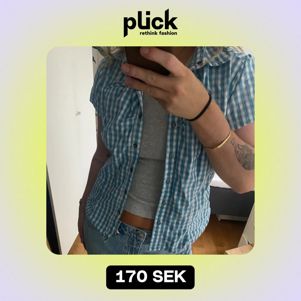 En blå/vit rutig skjorta från North Face, storleken är Medium men skulle säga medium/small. Bra skick💙