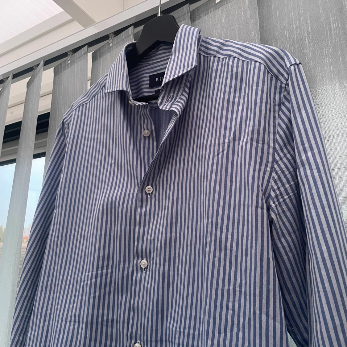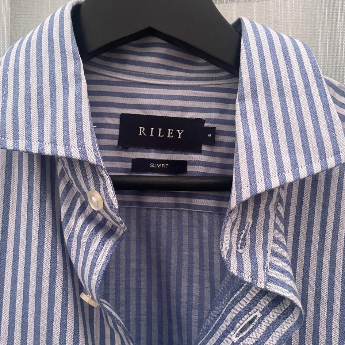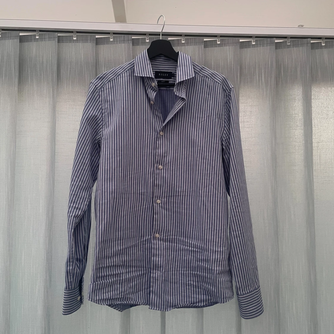 Snygg blårandig skjorta från Riley i slim fit-modell knappt använd | Storlek S, längd 75cm (från högst upp på skjortan ner) bredd 45-47cm(armhåla till armhåla) | Hör av dig vid några funderingar 👍