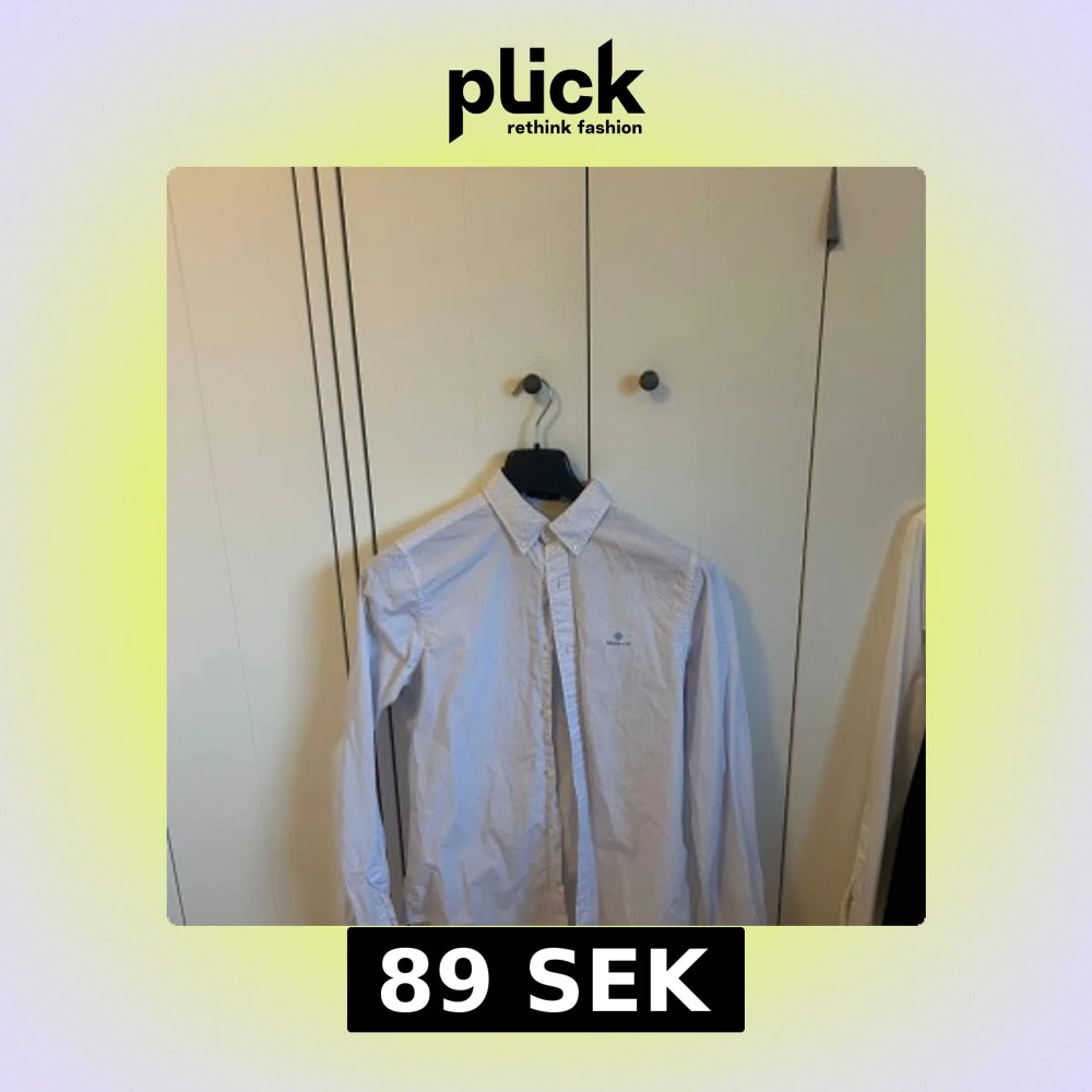 Säljer en ljusblå långärmad skjorta från GANT med små prickar i rött och blått. Klassisk krage och knäppning framtill. Perfekt för dig som gillar stilrena och tidlösa plagg med en twist.