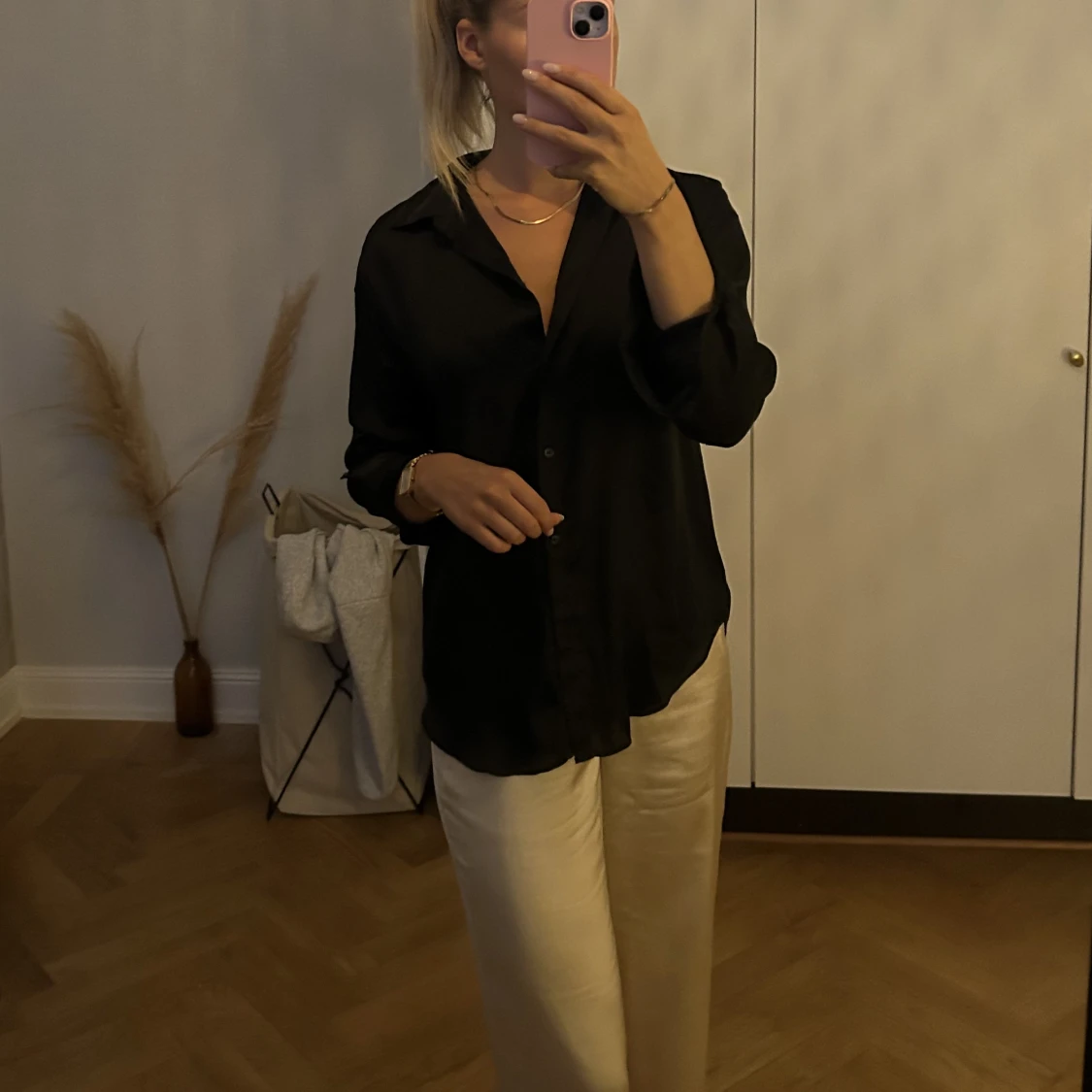 Svart skjorta i satin. Från hm i storlek xs. Sparsamt använd 🌸