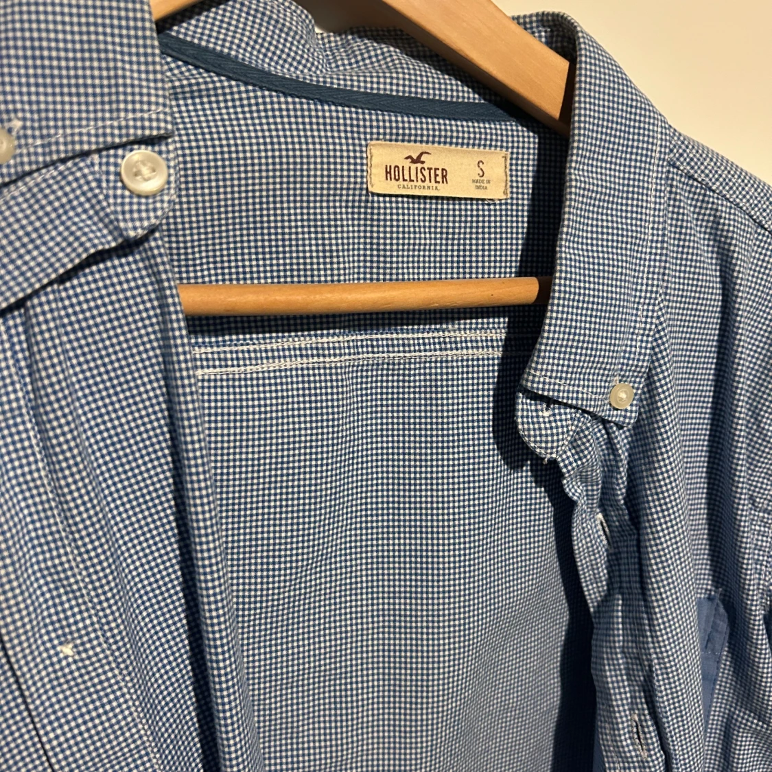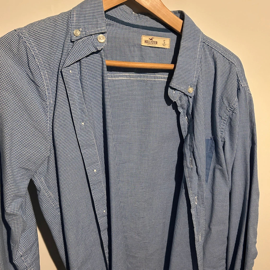 Jättefin rutig skjorta från Hollister med helfärgad blå bröstficka. Storlek S!