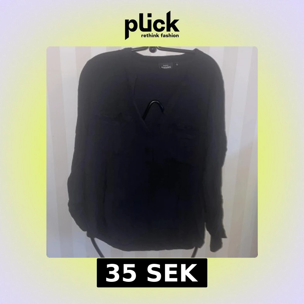 Säljer en stilren svart långärmad skjorta från KappAhl. Skjortan har en v-ringad design och är perfekt för en avslappnad look. Passar bra till både jeans och kjol.