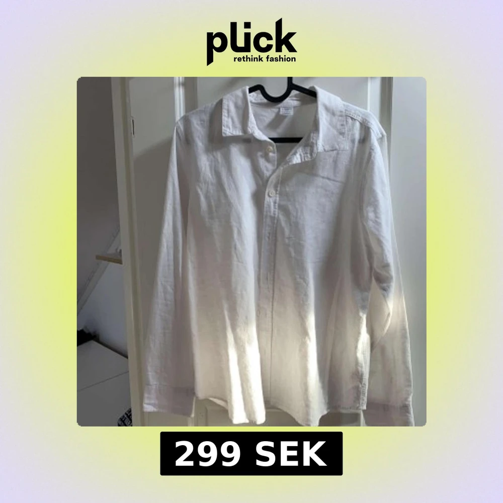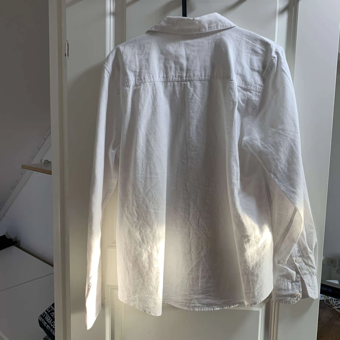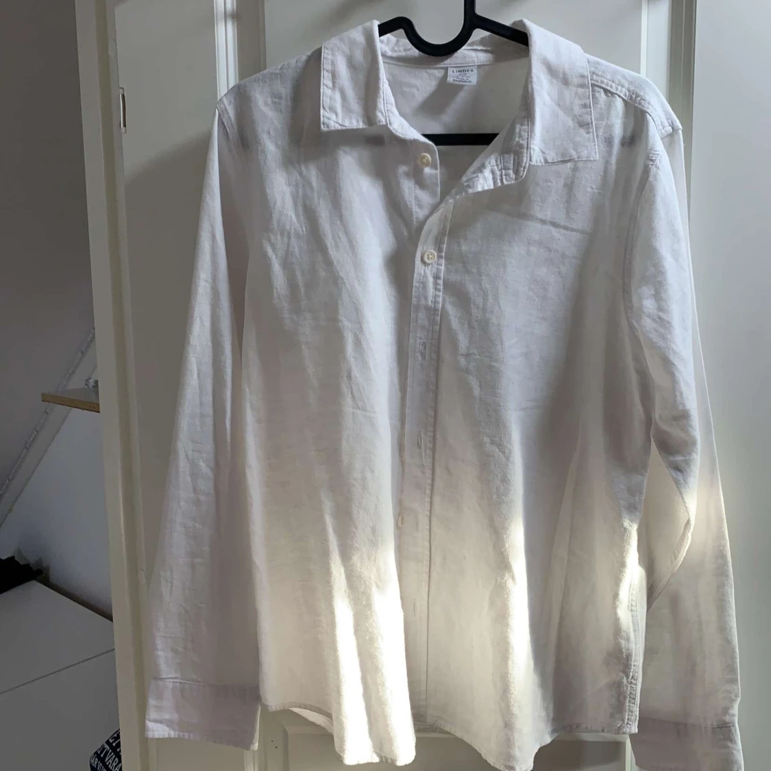 Vit linneskjorta! Köpt från lindex och är storlek 164, skulle säga att den passar er som är 155 till 167. Max använd typ 10 gånger!