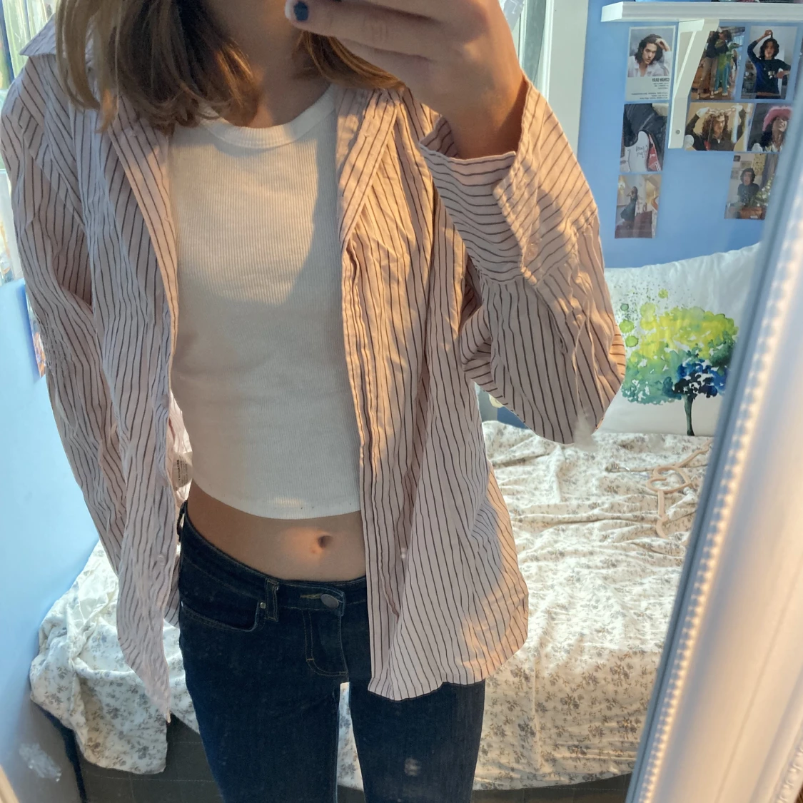 Ljusrosa skjorta från Broadway. Den är lite veckad bak i ryggen! Storlek L men sitter bra på mig som har XS!