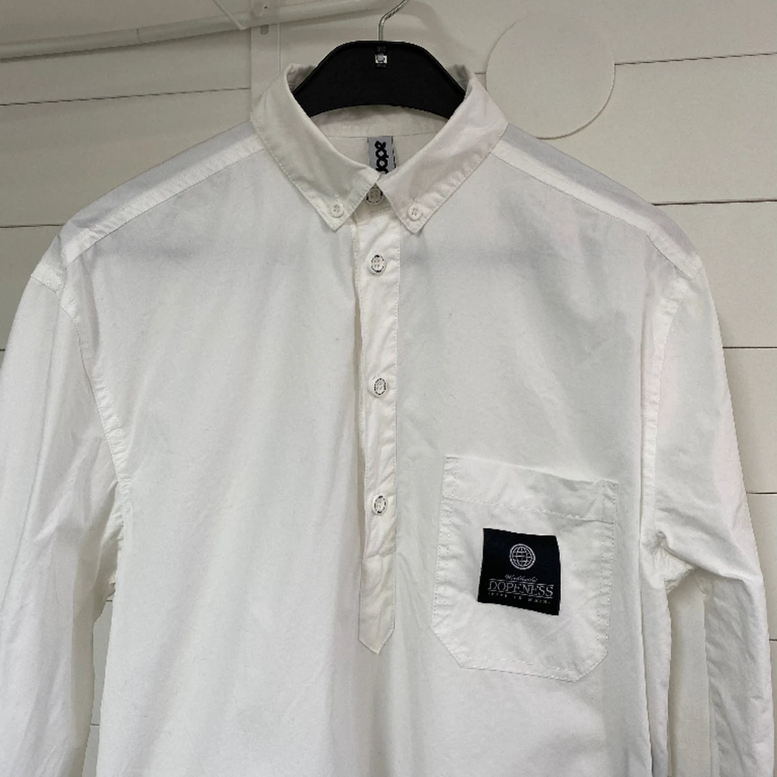 Lång tuff skjorta med fina detaljer som knappar på sidorna. Använd ett fåtal gånger så i fint skick. Strl. XS. Frakt tillkommer