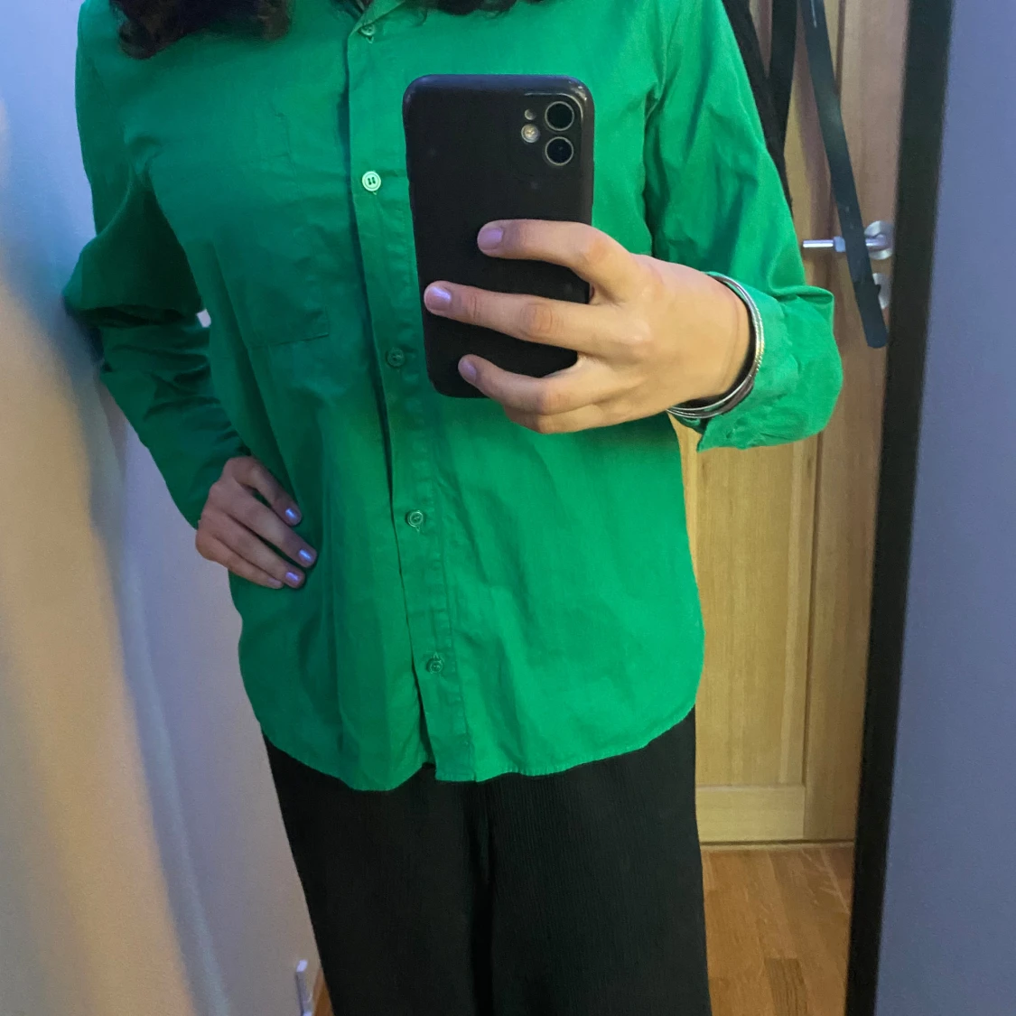 Färgglad grön skjorta, säljer då den inte passar min stil. Ganska oanvänd. Storleken är XS men passar också S.